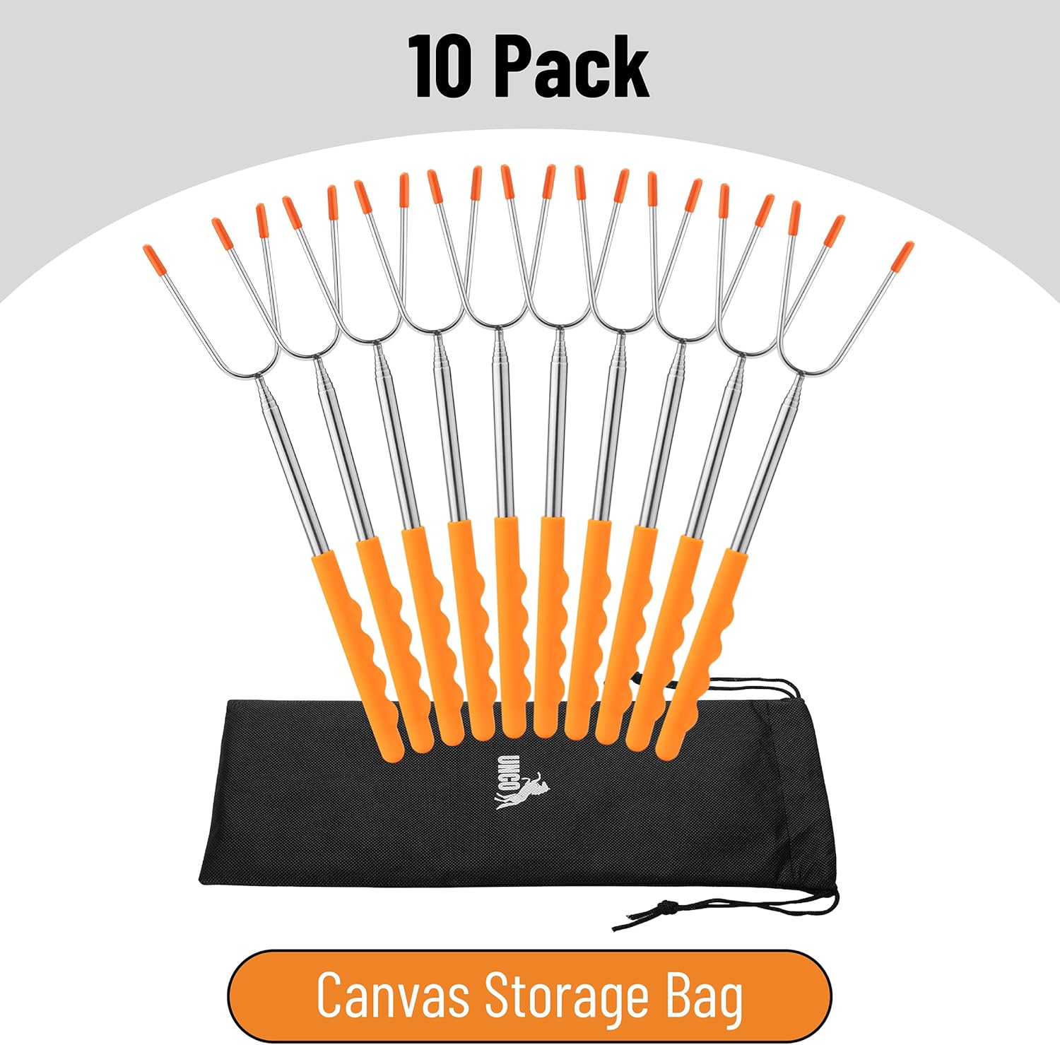 Family pack: This set includes 10 roasting sticks, making it perfect for families or groups, allowing everyone to participate in the fun of roasting marshmallows, hot dogs, or other campfire treats.
