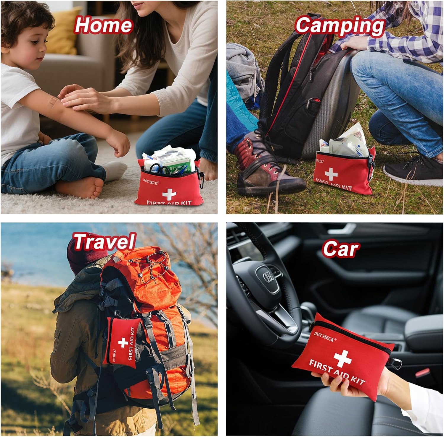 COMPREHENSIVE CARE: DWCHECK Small first aid kit includes 132 professional-grade medical and safety supplies, such as all kinds of bandages, disposable gloves, wipes, tourniquets, emergency blankets, scissors, safety pins, triangular bandages, and more. Whether for daily use or outdoor activities, it is always ready to handle various emergencies anytime, anywhere.