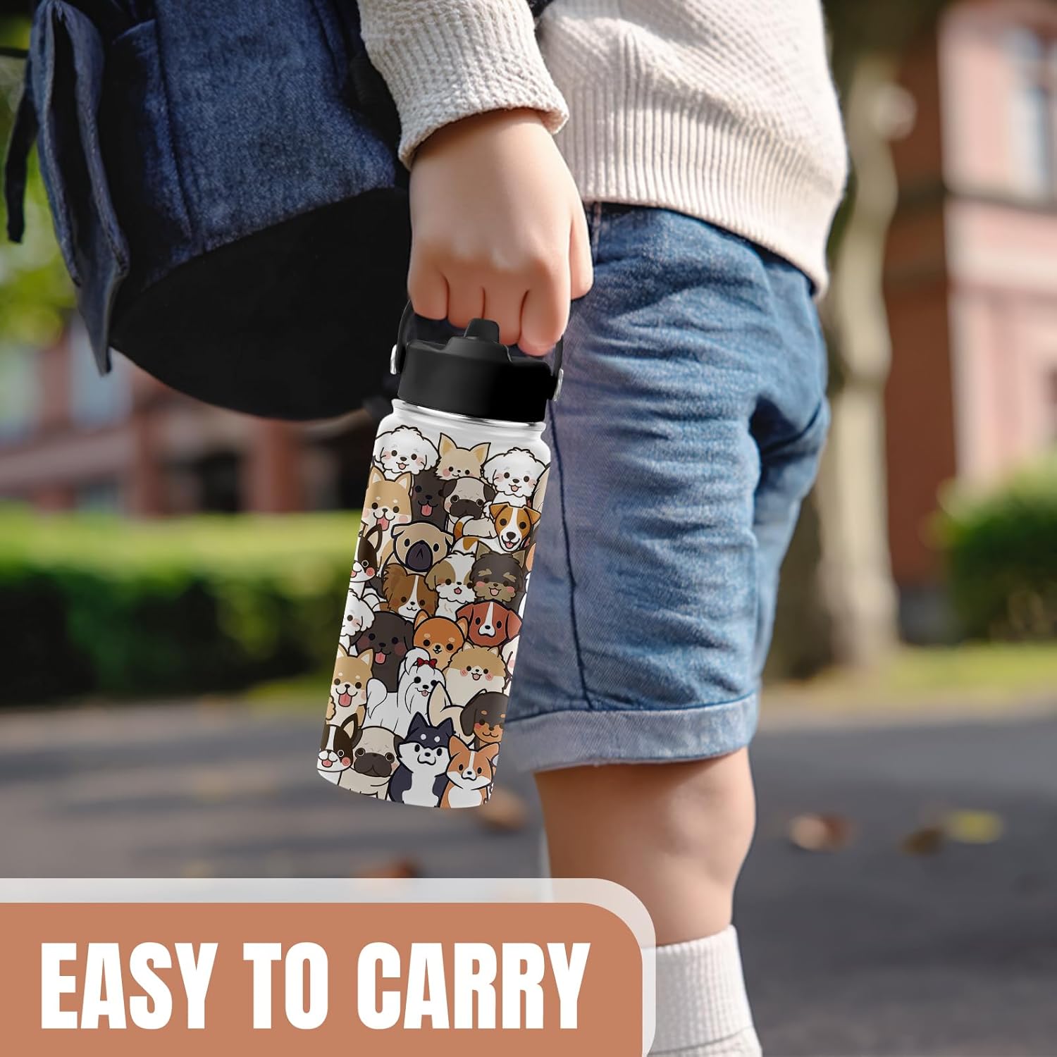 Vacuum Insulation: The puppy insulated water bottle has double-wall vacuum insulation design, keeping both hot and cold beverages at the desired temperature for extended periods. Enjoy your drink at your favorite temperature anytime, anywhere. It also prevents condensation from forming, keeping the water bottle dry