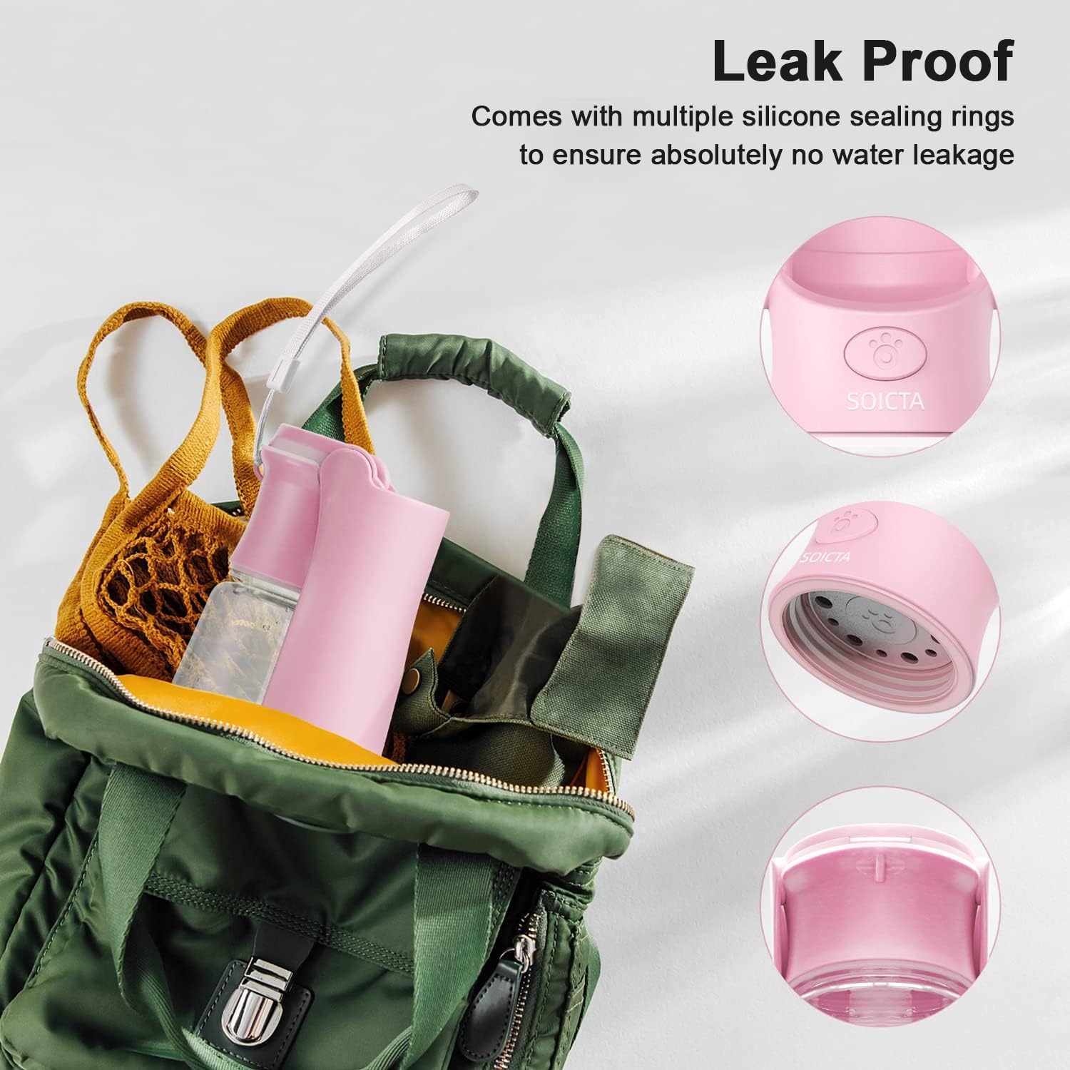 Double Leak-proof Design: The portable dog water bottle comes with silicone rubber sealing rings and waterproof keys, the perfect solution for leaking water.