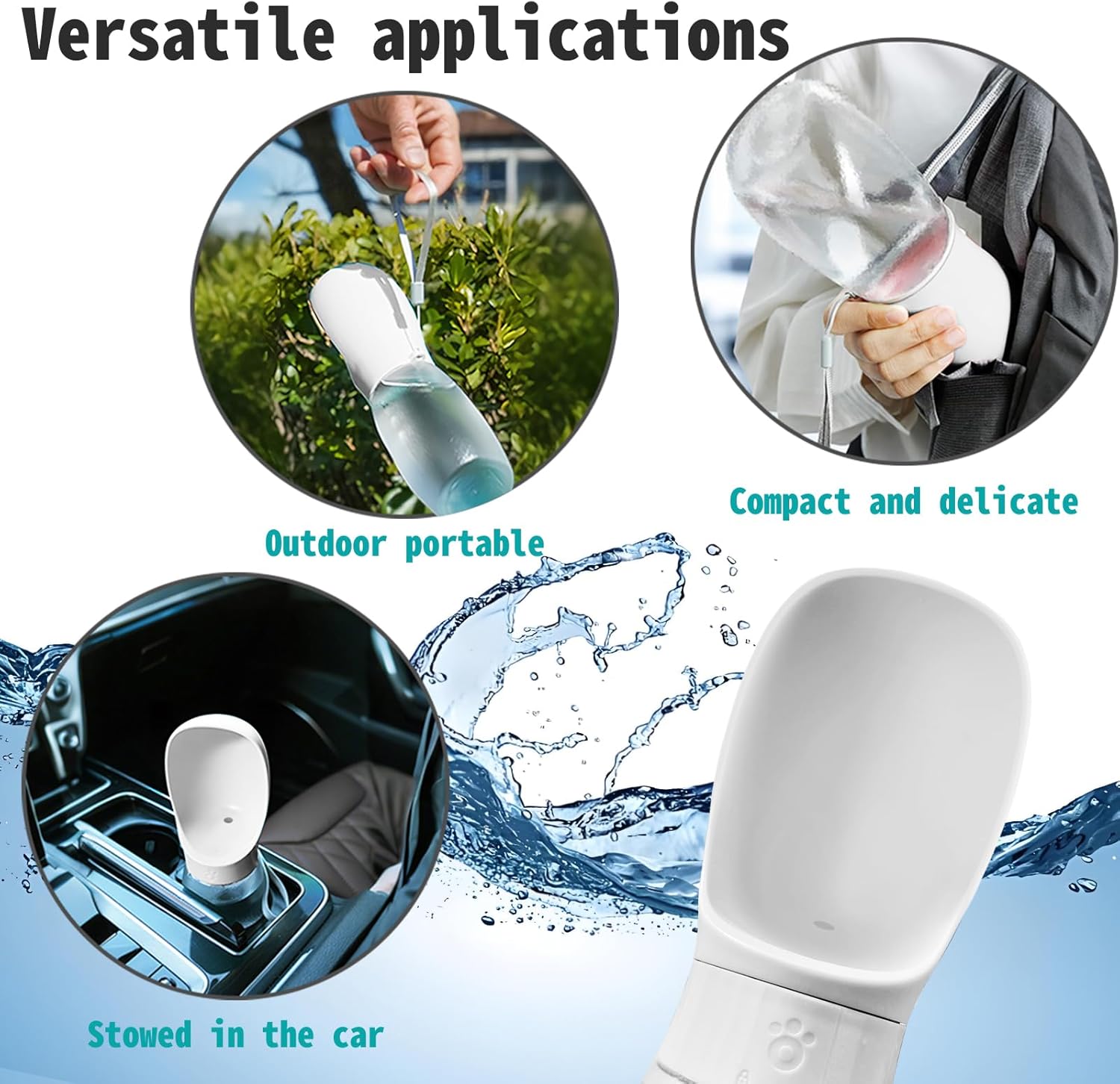 【CONVENIENT TO CARRY】Dog water bottle enough capacity 19 oz 550ml.capacity meets 4-hour hydration needs for medium dogs. and compact water bottle design is great for your pet dog or cat when outdoor walking, running, hiking, travelling or playing, etc. You can put it into backpack or hang on your hand with sling rope, very easy to carry to anywhere you want~