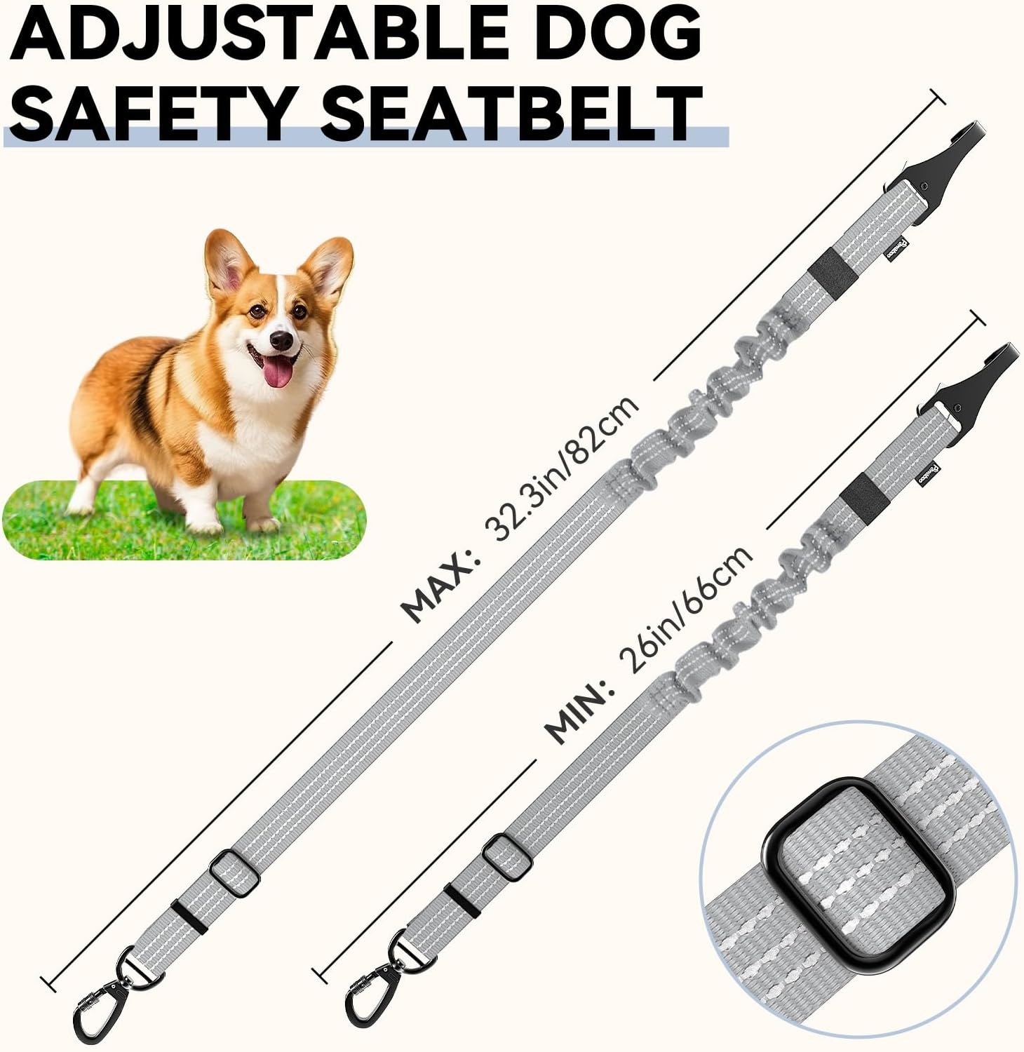 Adjustable Pet Leash for Car: The dog car leash strap can be adjusted to maximum length (with elastic cord stretch): 32.3in/82cm, and minimum (without elastic cord stretch): 26in/66cm, you can adjust it to a comfortable length according to your pet’s size, making furry dog enjoy the journey.