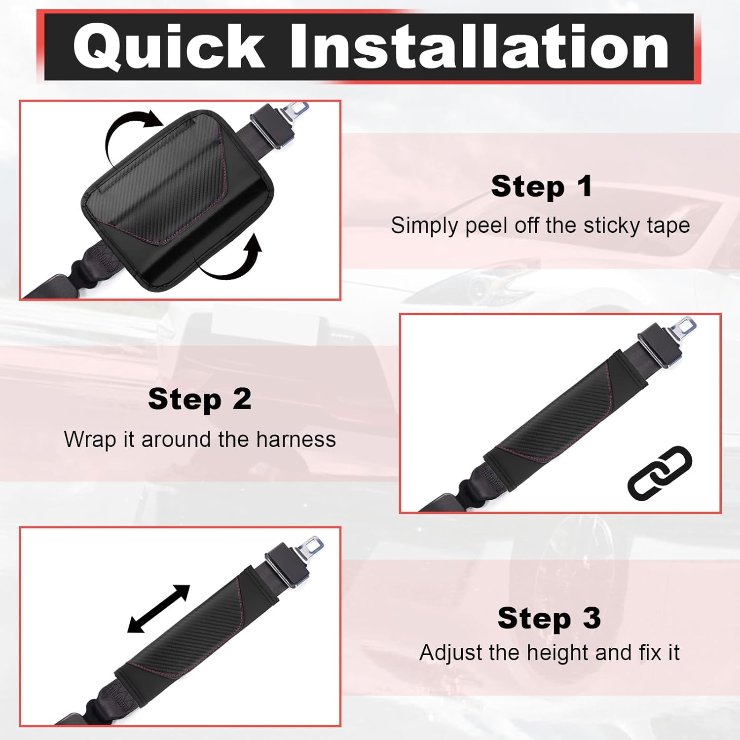 Quick Installation: Designed with sticky tape for quick installation and removal without any tools, these seatbelt covers are easy to operate. Simply peel off the sticky tape, wrap it around the seat belt, adjust the height, and fix it to complete the installation