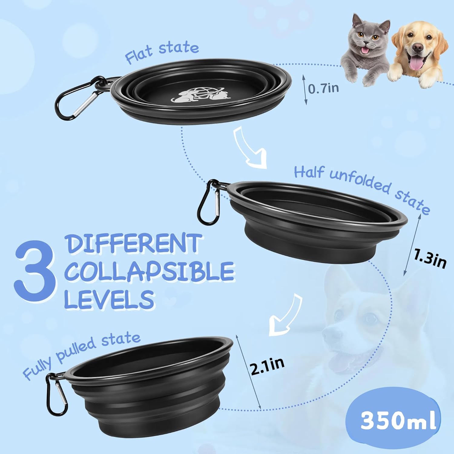 【Collapsible Dog Bowl 2-Pack for On-the-Go Pets】 Foldable dog bowl effortlessly collapses to a mere 1.5 inches, making storage a breeze in your backpack, car, or even pocket. Each bowl comes with a handy carabiner clip, perfect for attaching to your leash during hikes or travels