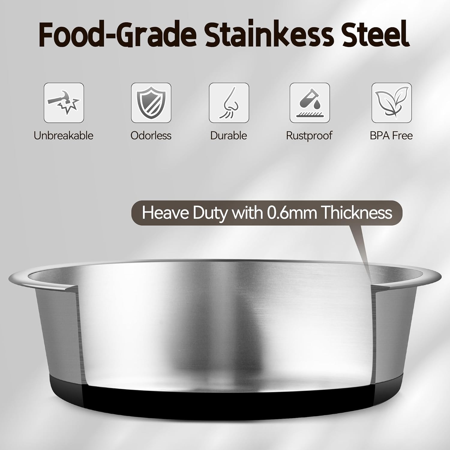 【Safe & Durable】The mental dog bowls are made of food-grade stainless steel, which also super strong that won’t break, ensuring longevity and durability, even if your pet friend loves to chew.