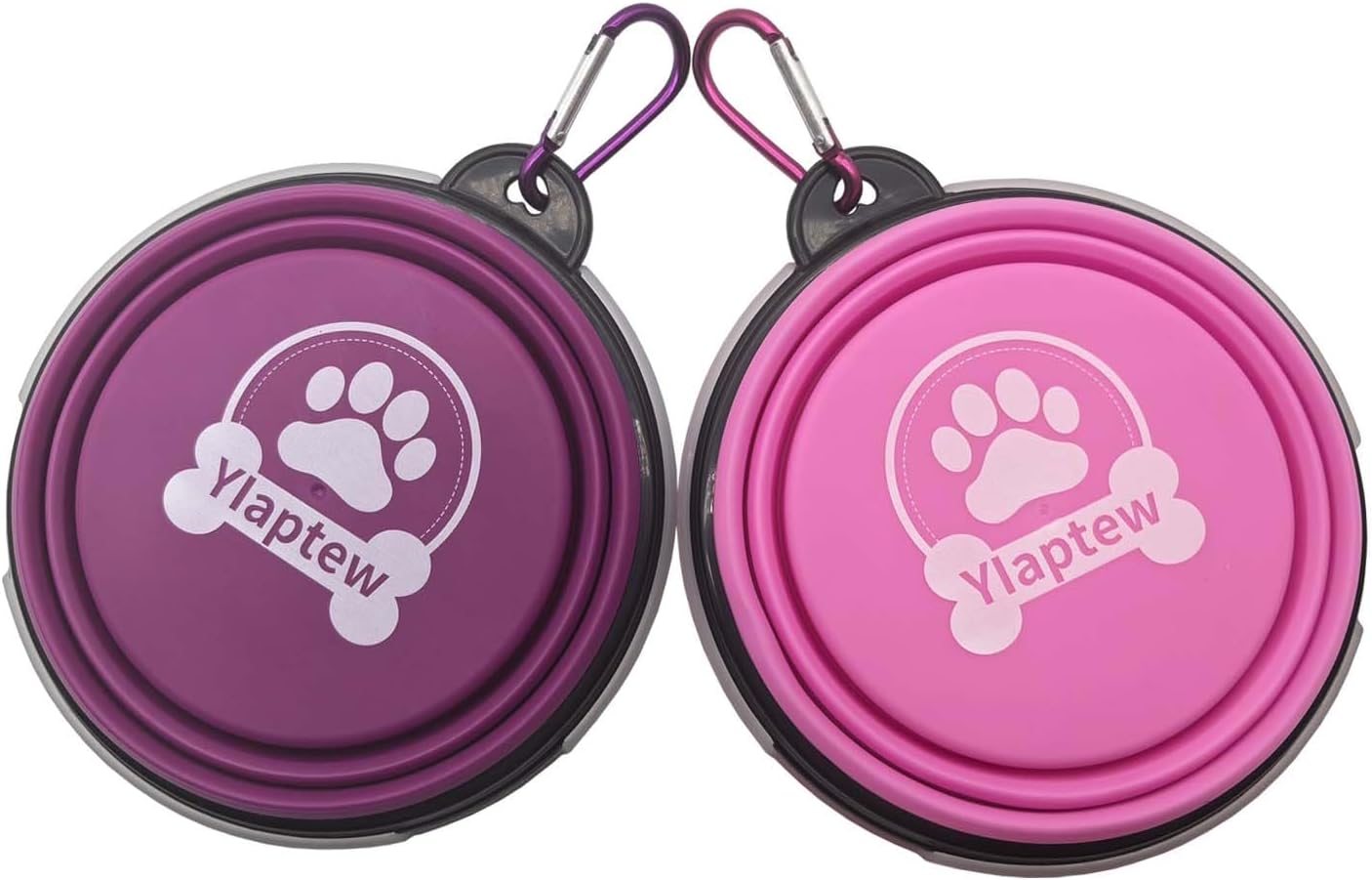 🧳 Small Collapsible Dog Bowl 12oz,2 Pack Portable and Foldable Pet Travel Bowls with 2 Carabiners & Lids for Dogs Cats and Small Animals (Purple+Pink, 350ml) — Dog Travel Gear Review & Current Price