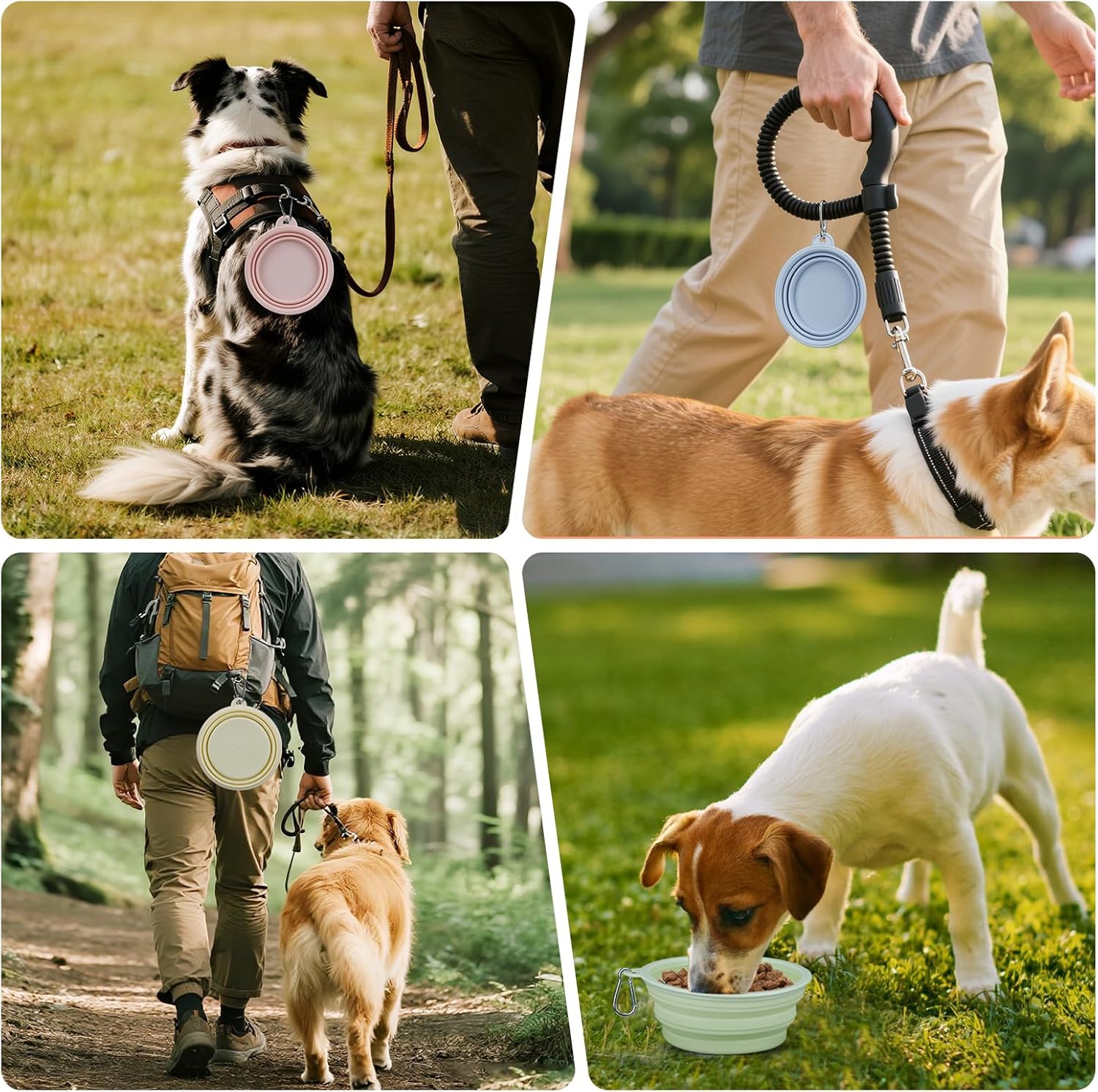✅【USAGE SCENARIOS & AUDIENCES】: LeeRound portable dog bowls with a carabiner for hands-free carrying during hikes or daily walk, clip onto backpack, belt loop, dog leash. 2 Pack bowls with two colors which easy to achieve wet and dry separation