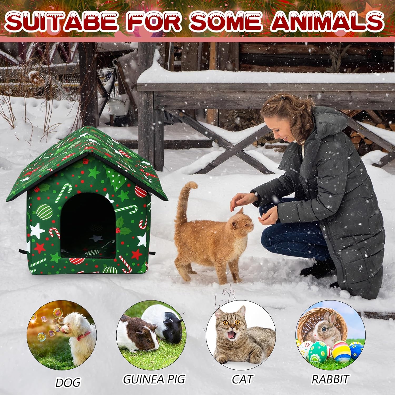 Christmas Gift for Pets: featuring a festive and practical design, this outdoor cat house makes a thoughtful holiday gift for pet lovers; It is suitable for cats, puppies, rabbits, or other small animals, offering them a warm and protective home throughout the Christmas season and the cold winter months