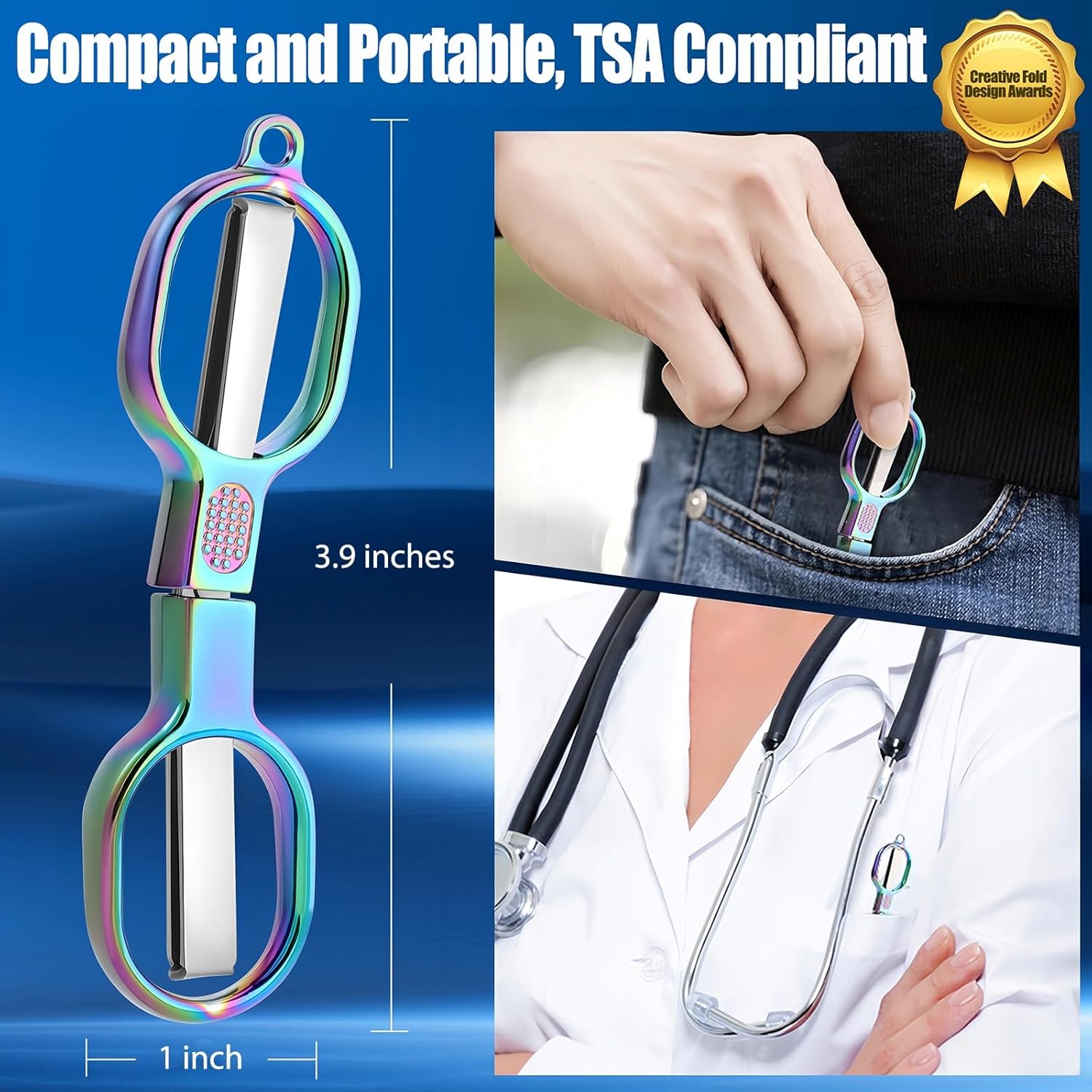 Folding Design, TSA-Compliant: Travel safely with these small portable scissors. Blades fold in when not in use for secure storage. Easy to open and close, with a blunt tip design that adds peace of mind at home, office, and outdoors