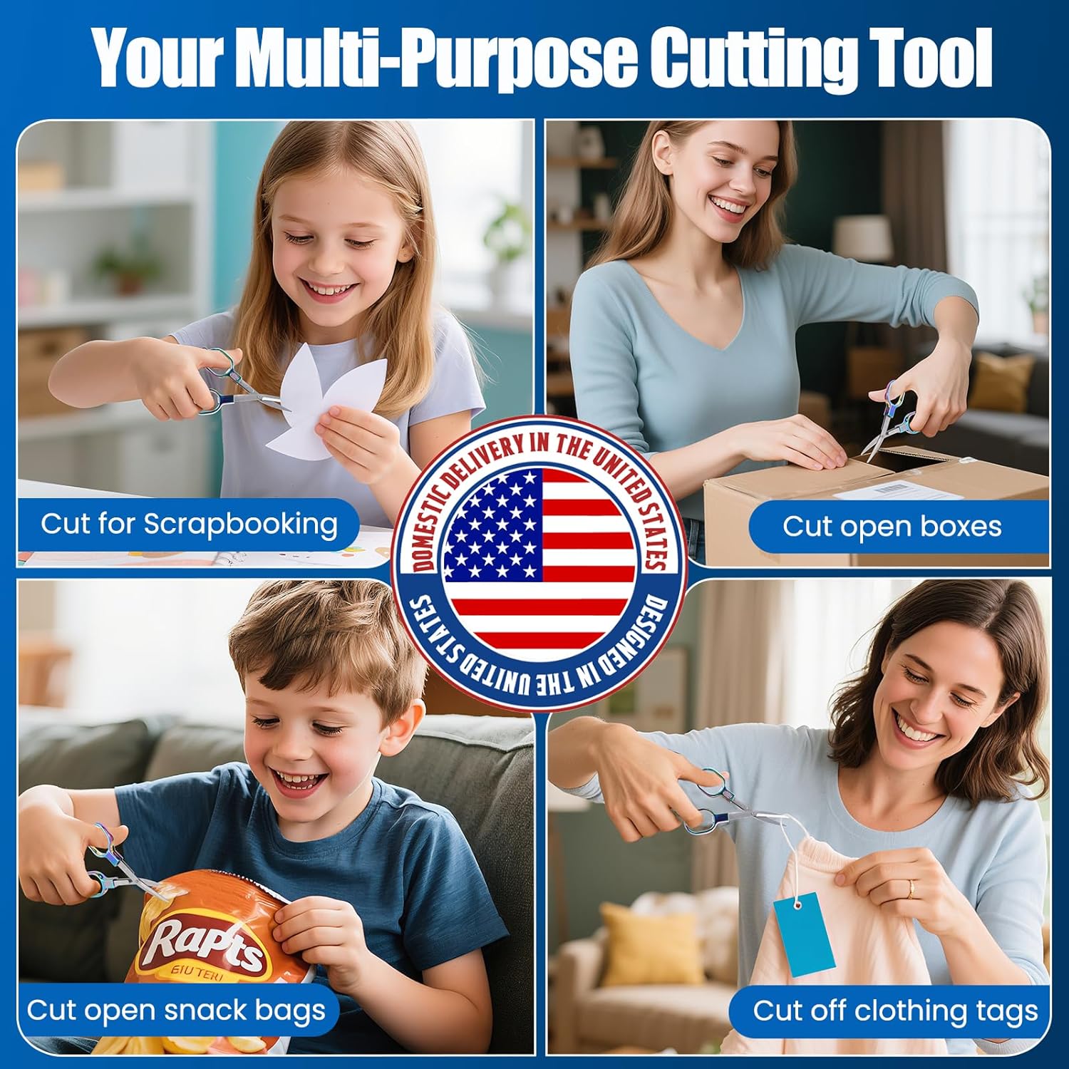 Wide Application: These versatile badge reel scissors cut tape, paper, fishing line, tags, and more. A must-have for kitchens, offices, schools, crafts, travel, fishing, and outdoor adventures—handy for everyday use or unexpected needs