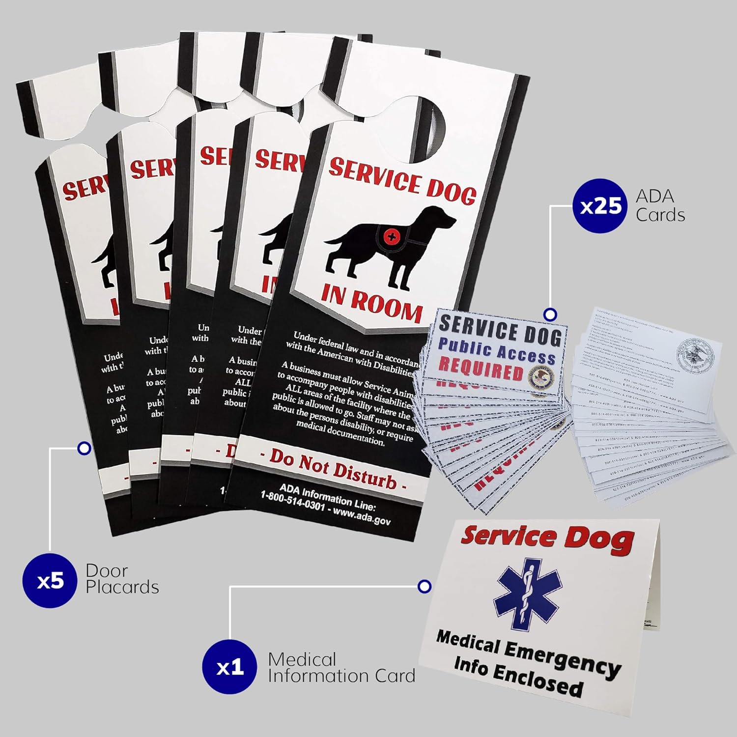 Clear Display & Emergency Ready – The kit includes service dog do not disturb door hangers, a medical emergency information card, and 30 ADA Federal Law Public Access Required cards, ensuring easy identification and essential details in case of emergencies