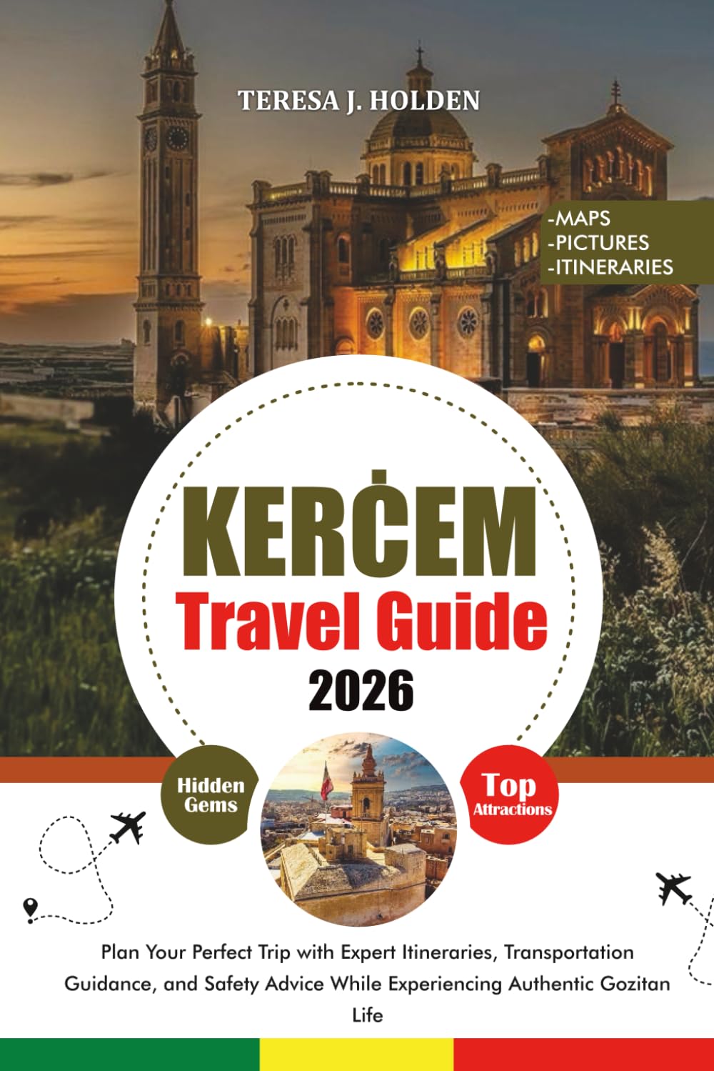 Inside this book, you’ll discover:Expertly Planned Itineraries – One-day, three-day, and week-long plans to maximize your time and experience Kerċem’s highlights without stress.Top Attractions & Hidden Gems – From the breathtaking Ta’ Ċenċ Cliffs to the historic Ggantija Temples and charming village streets, know exactly where to go and what not to miss.Food and Culinary Adventures – Taste traditional Kerċem cuisine, discover the best cafés, street food, and seasonal festivals that celebrate local flavors.Accommodation Options – Detailed insights into hotels, guesthouses, self-catering rentals, and boutique stays to fit every budget and preference.Practical Travel Guidance – Step-by-step instructions for flights, visas, transportation, maps, apps, Wi-Fi, safety, and emergency contacts.Cultural Insights & Etiquette – Learn the local customs, Maltese phrases, festivals, and respectful travel practices to connect meaningfully with locals.Adventure & Outdoor Activities – Hiking trails, cycling routes, water activities, birdwatching, photography, and nature tours for explorers of all types.Shopping & Artisan Experiences – Insider tips for local markets, craft shops, and unique souvenirs to bring home authentic memories.Responsible Travel Tips – Sustainable practices to preserve Kerċem’s beauty, culture, and community for future travelers.Packed with maps, vivid pictures, and insider tips, this guide transforms the way you experience Kerċem. Every page is designed to ensure you travel smarter, explore deeper, and enjoy every moment in this captivating Maltese village.