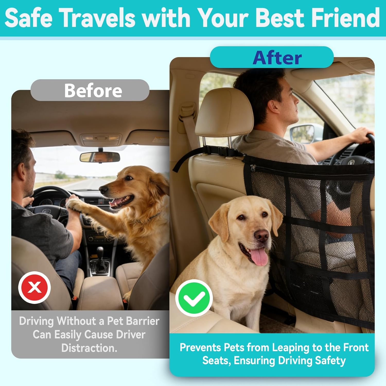 Drive Safely Without Distractions: Keep your furry co-pilot secure in the back seat with this essential car safety accessory. Our dog car barrier effectively prevents your dog from jumping into the front, minimizing distractions and helping you stay focused on the road for a safer journey. It’s the must-have dog travel accessory for every pet owner.