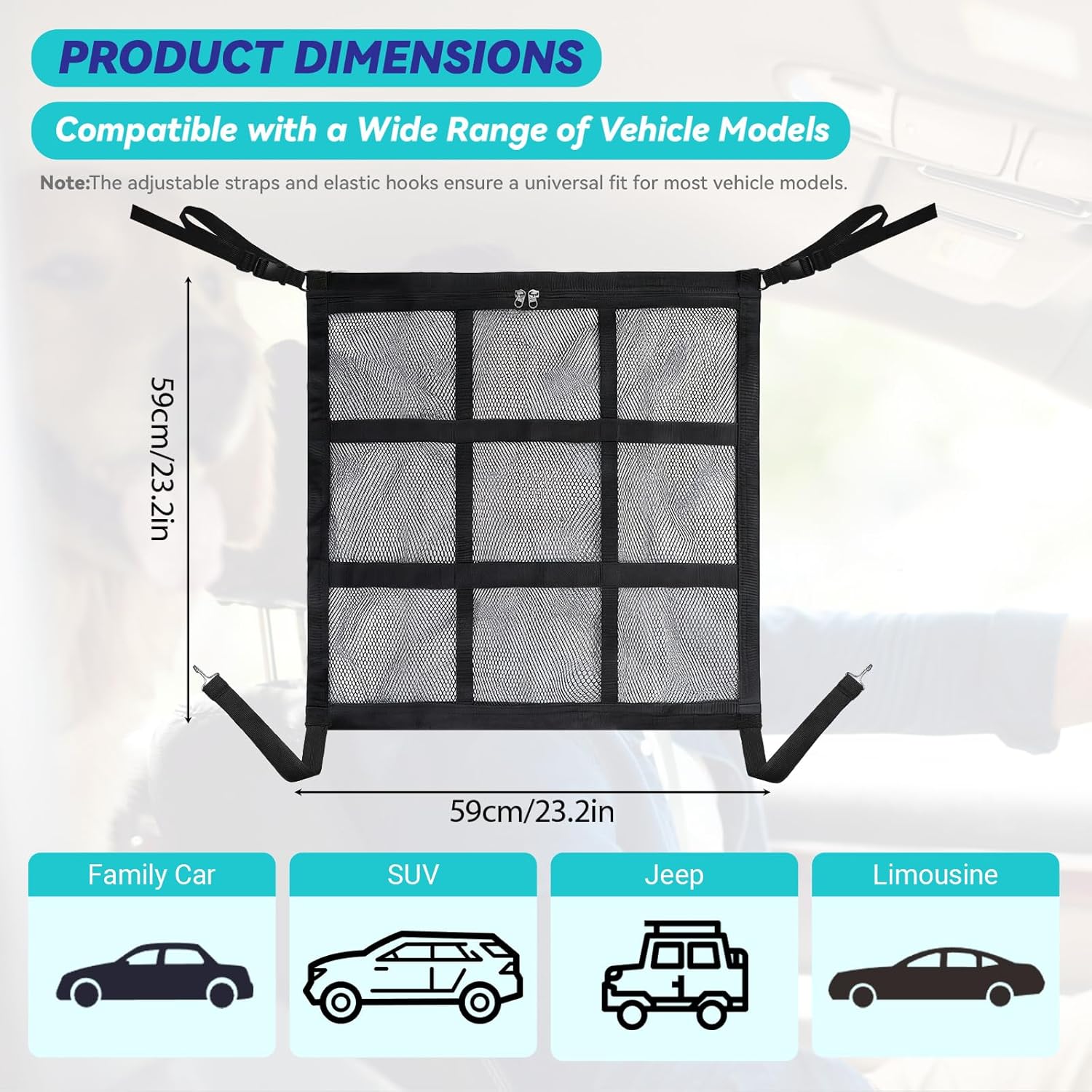 For smaller cars, attach straps to the outer headrest posts and knot the bungee cords. For larger SUVs, normal installation works—the adjustable straps ensure a secure fit for most vehicles.