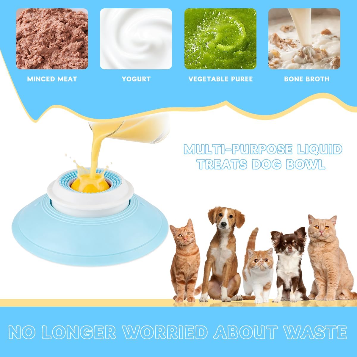 【Multipurpose Use】This pet licking bowl is suitable for both cats and dogs, especially for semi-liquid foods. Its unique rotating ball design helps to flip the food, and also accommodates sticky foods to prevent spills.