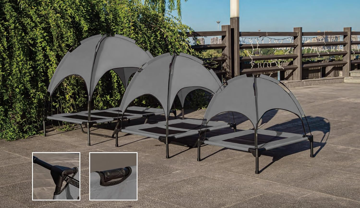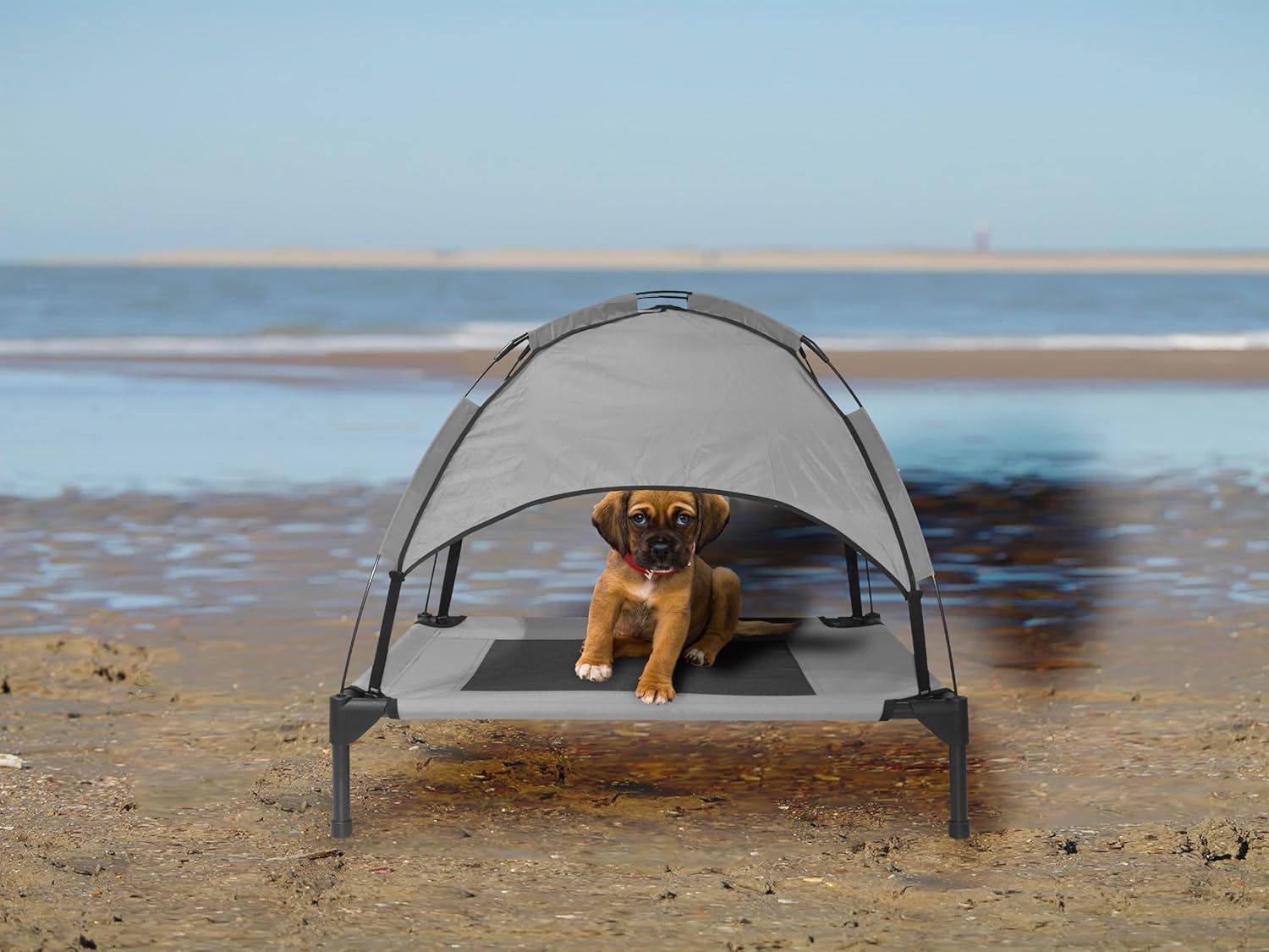 【All-Weather Canopy】 Waterproof sunshade blocks 95% UV rays & light rain, perfect for beach days or sudden showers. No more rushing to find shade 【Breathe Easy Design】 Elevated 27.95” with breathable mesh keeps pets cool in 100°F heat. Say goodbye to sweaty dog naps 【No-Slip Grip】 Anti-skid feet hold firm on grass, decks, or sand. Safe for excited pups during backyard BBQs 【3-Minute Setup】 Folds to 29”x5” – toss in your trunk! Take this portable pet tent from campsite to patio in seconds 【Scratch-Resistant Fabric】 Reinforced polyester stands up to claws. Wipe clean with a damp cloth – no hassle