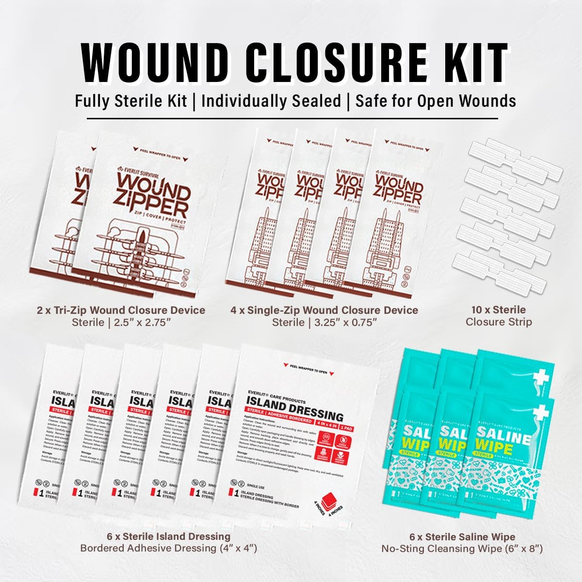 𝐐𝐔𝐈𝐂𝐊, 𝐑𝐄𝐋𝐈𝐀𝐁𝐋𝐄 𝐃𝐄𝐏𝐋𝐎𝐘𝐌𝐄𝐍𝐓 – 𝐖𝐇𝐄𝐍 𝐒𝐄𝐂𝐎𝐍𝐃𝐒 𝐂𝐎𝐔𝐍𝐓 | Engineered for immediate application, this kit is designed for rapid response in urgent situations. Every component is sterile and easy to access, ensuring you can confidently and efficiently handle emergencies. Ideal for use in remote locations, during critical moments, or when every second counts, this kit includes emergency laceration closures, zip sutures, and a variety of wound dressings that empower you to act swiftly and effectively.