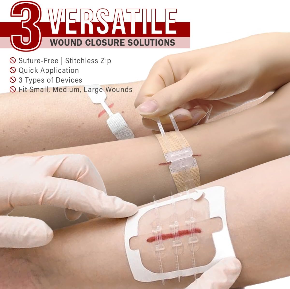 𝐒𝐓𝐈𝐓𝐂𝐇𝐋𝐄𝐒𝐒 𝐋𝐀𝐂𝐄𝐑𝐀𝐓𝐈𝐎𝐍 𝐑𝐄𝐏𝐀𝐈𝐑 𝐅𝐎𝐑 𝐅𝐀𝐒𝐓, 𝐒𝐀𝐅𝐄 𝐂𝐋𝐎𝐒𝐔𝐑𝐄 | Handle cuts and lacerations effortlessly with our advanced Zip-Stitch technology. The system allows for quick, safe wound closure without traditional stitching, perfect for adventurers and emergency responders. Ideal for situations where liquid stitches for wounds or butterfly stitches for wounds are required, our Zip-Stitch laceration kit ensures seamless, painless, and rapid skin closure without the hassle of suture bandages.