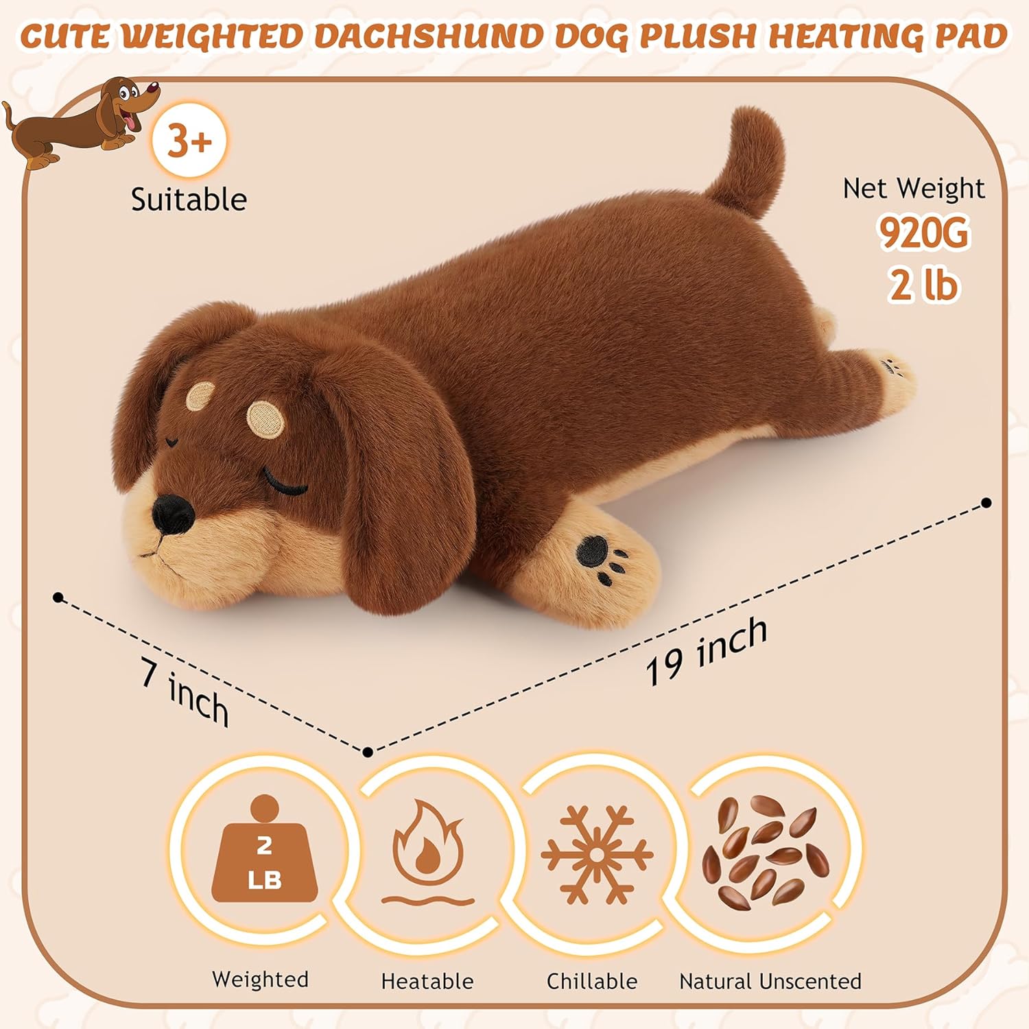 【Your Health Companion & Safe Use】A great helper for parents who ease their kids! With soothing unscent, this dachshund dog plush toy is a great stress relief toy to provide a sense of security during difficult times. A soft warm and hugable plush helps promote positive emotions and relieve anxiety This heat pad for pain relief will release soothing moist heat which promotes blood circulation, effectively reducing the pains in your back, neck, sore joints and muscles. Its flat-designed gives the heating pad flexibility, so it can provide relief to all different parts of your body.