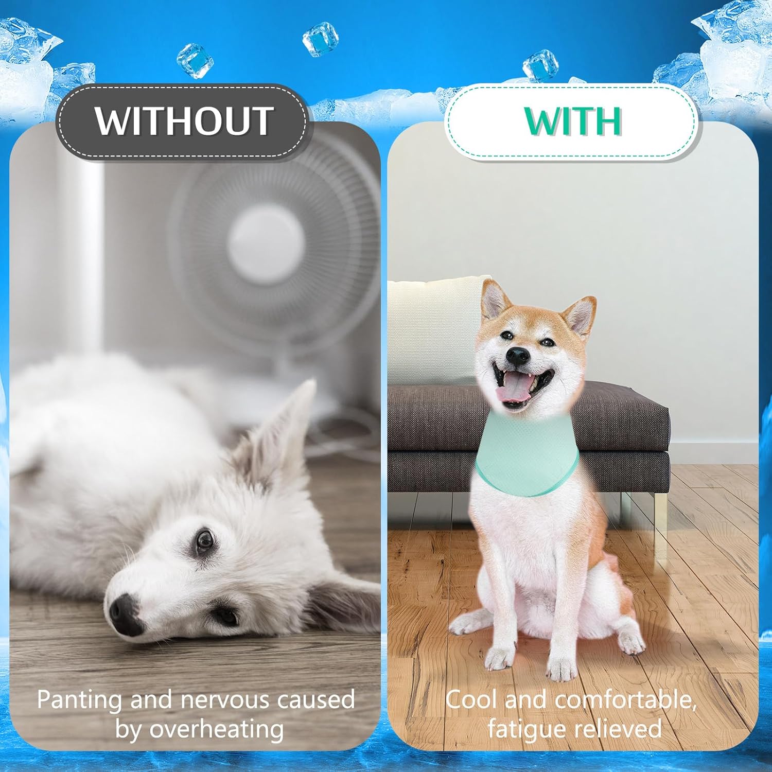 Simple and Safe: soak the cooling scarf for dogs in clean water for a few minutes and then squeeze it dry, put it on dog’s neck, and fix the hook and loop fasteners strap, then it can quickly start cooling, safe and comfortable, bringing dogs coolness in summer while walking, playing or resting; Please note that in order to prevent the collars from hardening in transit, they will be sealed and packed in a clean and moist condition