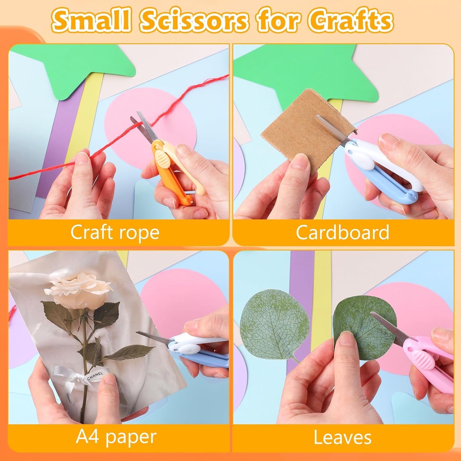 Widely Applicable: These small scissors are versatile and practical, perfect for kid toddler crafts, and can be widely used on paper, cardstock, cardboard, wrapping paper, fabric, tape, leaves, photos, and more.