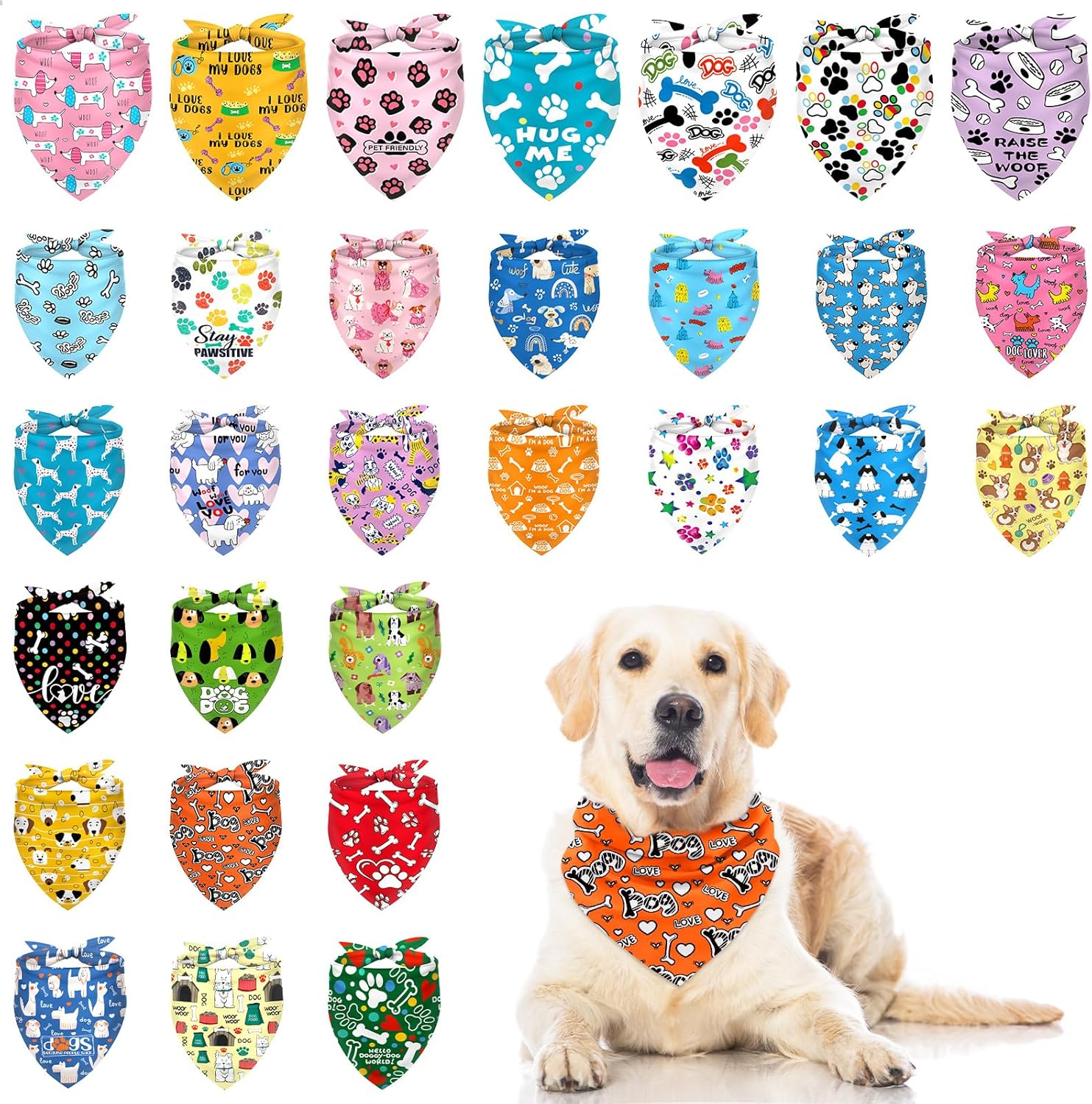 【Value Pack for Multi-Dog Homes or Events】Bandanas for large dogs, Includes 30 high-quality dog bandanas in assorted colors and patterns – perfect for families with multiple pets, dog groomers, shelters, or party favors for pet-themed events.