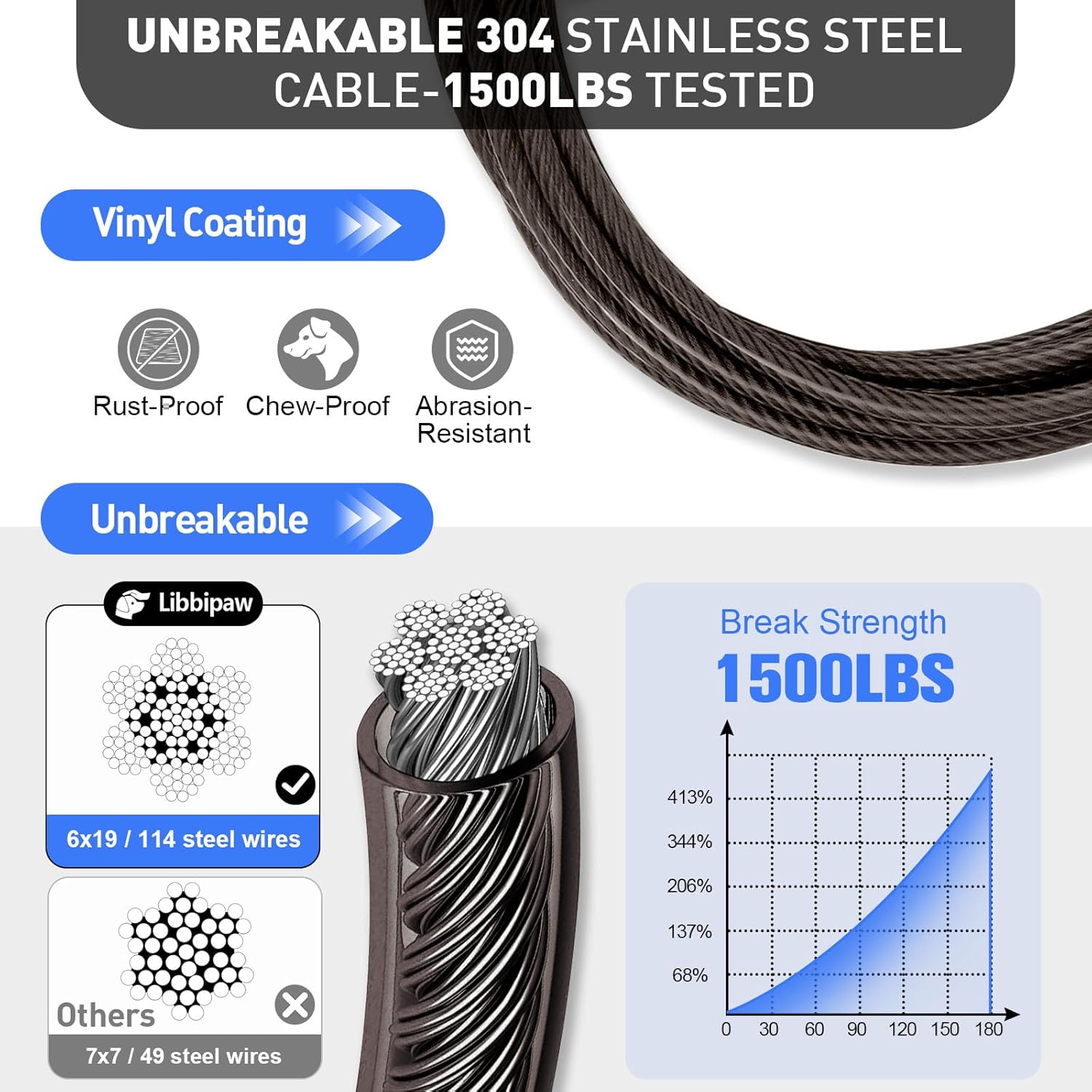 Libbipaw Dog Tie Out Cable – Long-Lasting, Rus-Proof, Chew Proof and No Tangle!