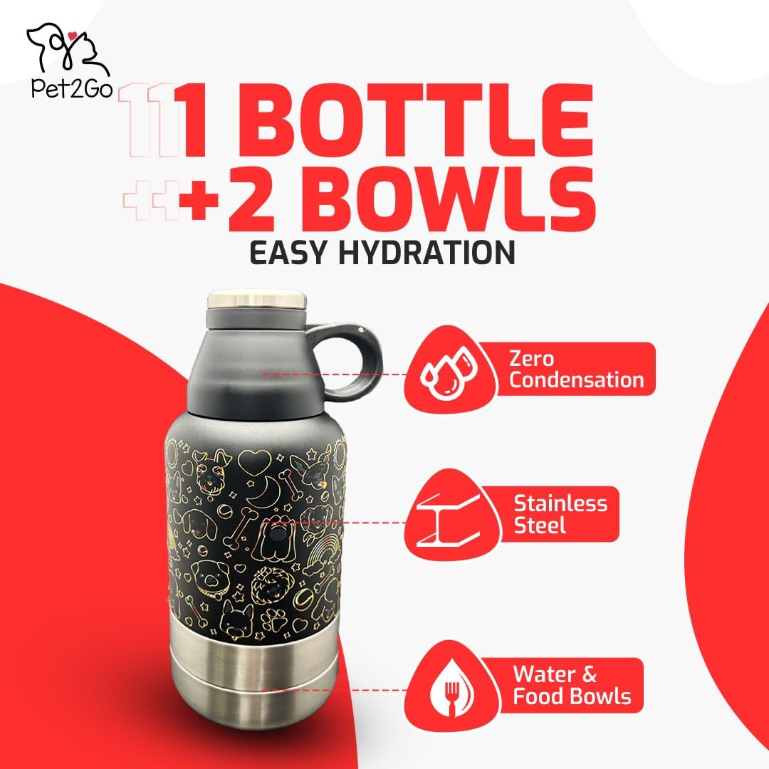 The Pet2Go travel dog water bottle ensures a hassle-free traveling experience alongside your pet, keeping their water, treats and food within immediate reach and preventing all sorts of messy experiences!
