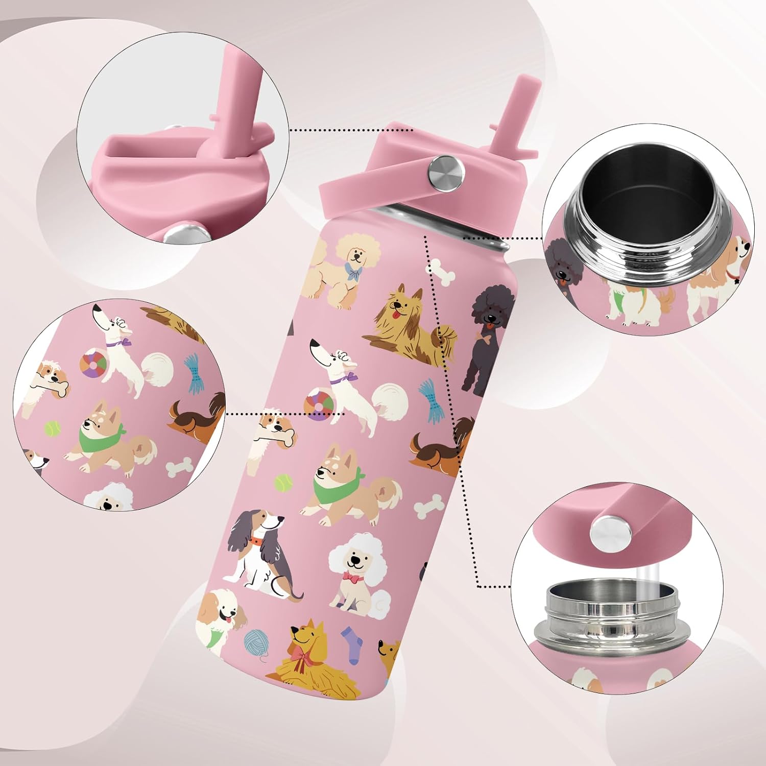 【Cute Puppy Gifts】This 32oz water bottle features a charming dog theme. It’s perfect for dog lovers, making a delightful gift for women, girls, sisters, best friends, daughters, moms, and dog enthusiasts