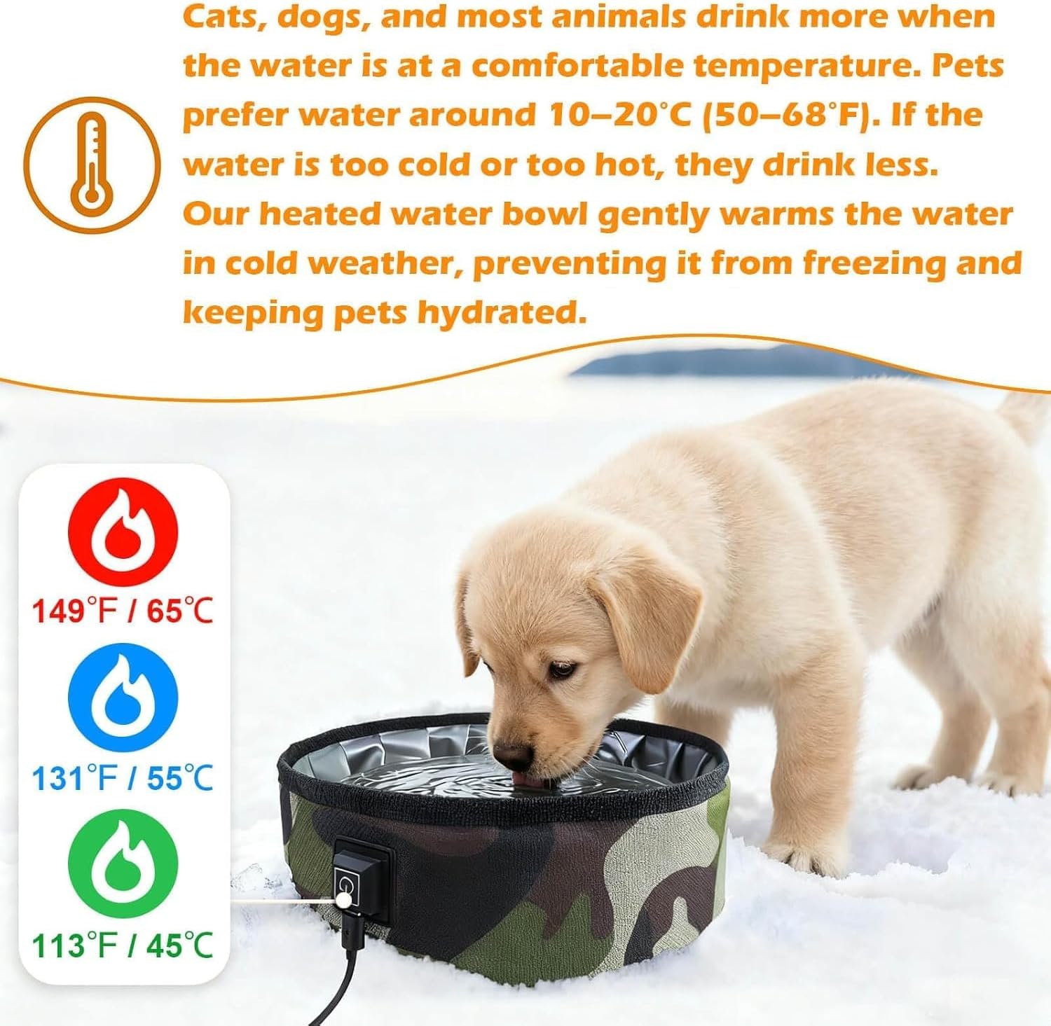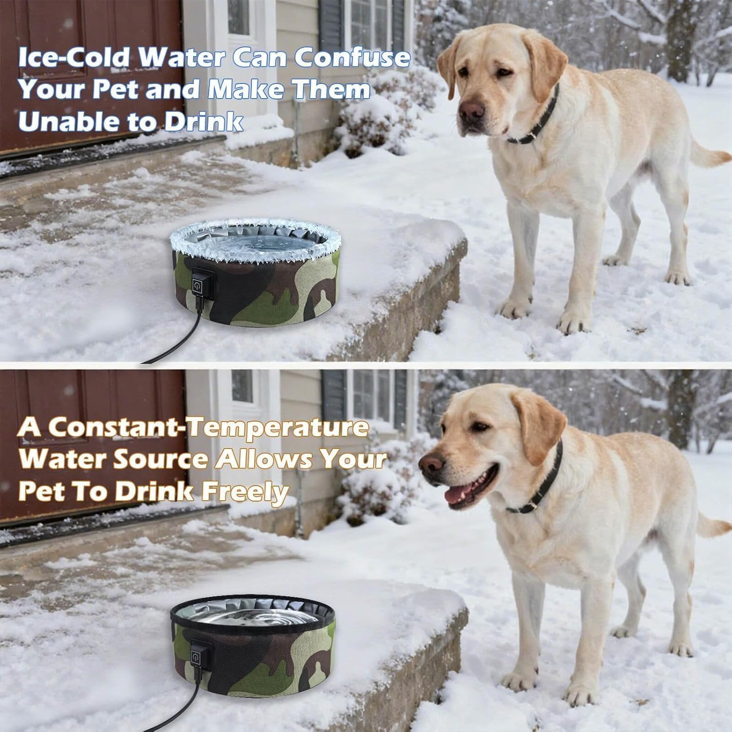 [Durable & Waterproof Construction] – Made with waterproof materials and a sealed heating base, this bowl is safe for outdoor environments. It resists leaks and moisture, ensuring long-lasting performance and peace of mind in wet and snowy weather.