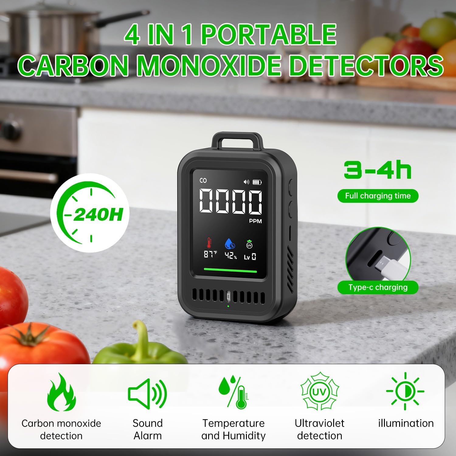 🛡️ Portable Carbon Monoxide Detector for Travel, 4-in-1 CO Detector with Audible & Visual Alerts, Magnetic Lanyard, LED Light, 220H Standby, CO Monitor/Temp/Humidity/UV Sensor for Camping, Home, RV, Car — Safety, Comfort & Current Price (Review)