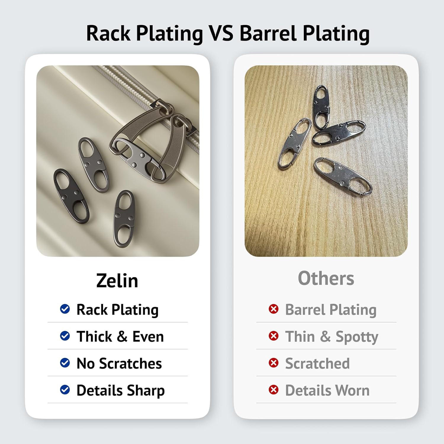 Durable Hanging-Plated Craftsmanship: Featuring superior hanging-plated coating (not barrel-plated) over zinc alloy, these zipper pulls resist rust and wear. The locking carabiner withstands daily use while keeping a smooth finish.