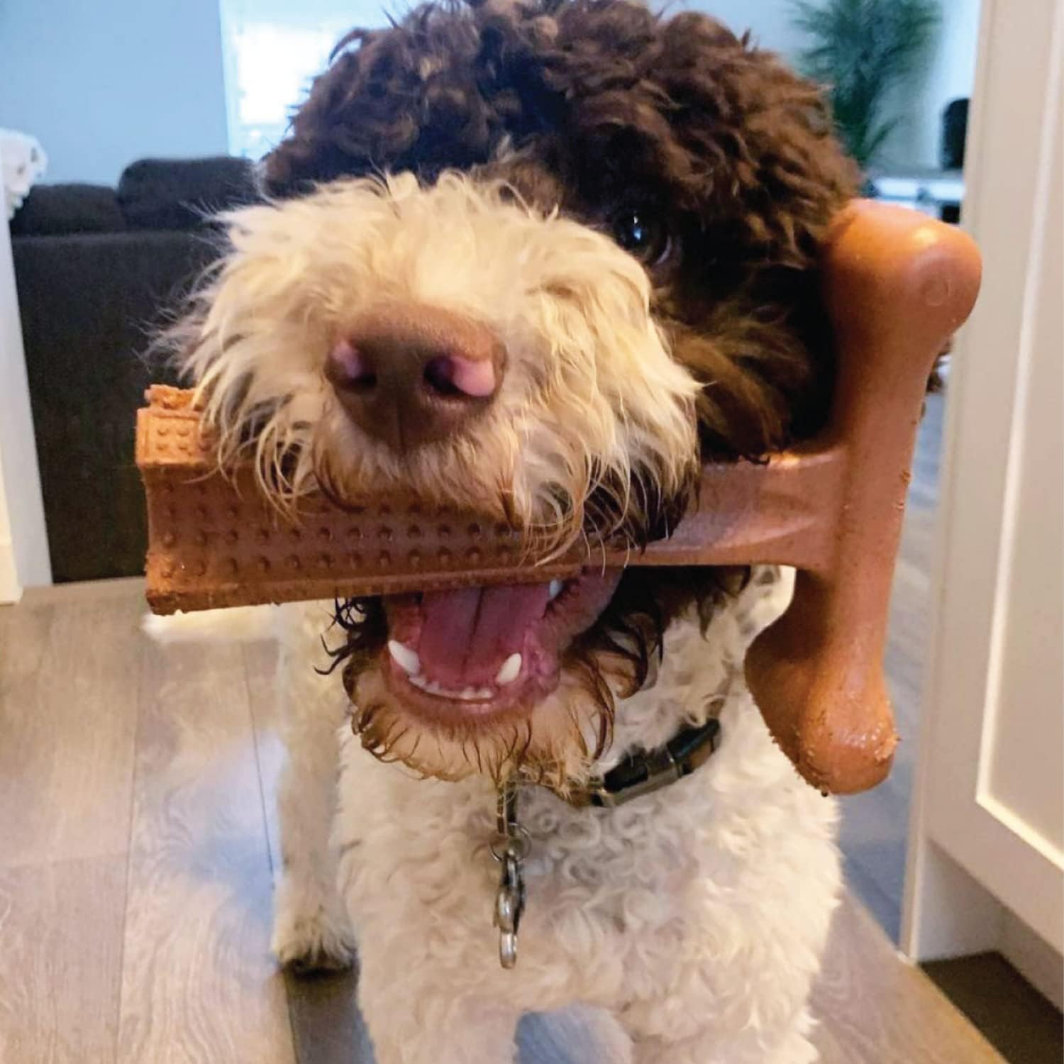 Dogs chew by nature! Keep them happy with long-lasting, flavored chew toys to fight boredom & anxiety and you’ll be their hero! Keeps dogs busy for hours to help encourage proper chewing, rather than destroying your slippers. Chew away to help clean teeth, massage gums, freshen breath and strengthen those big jaw muscles.