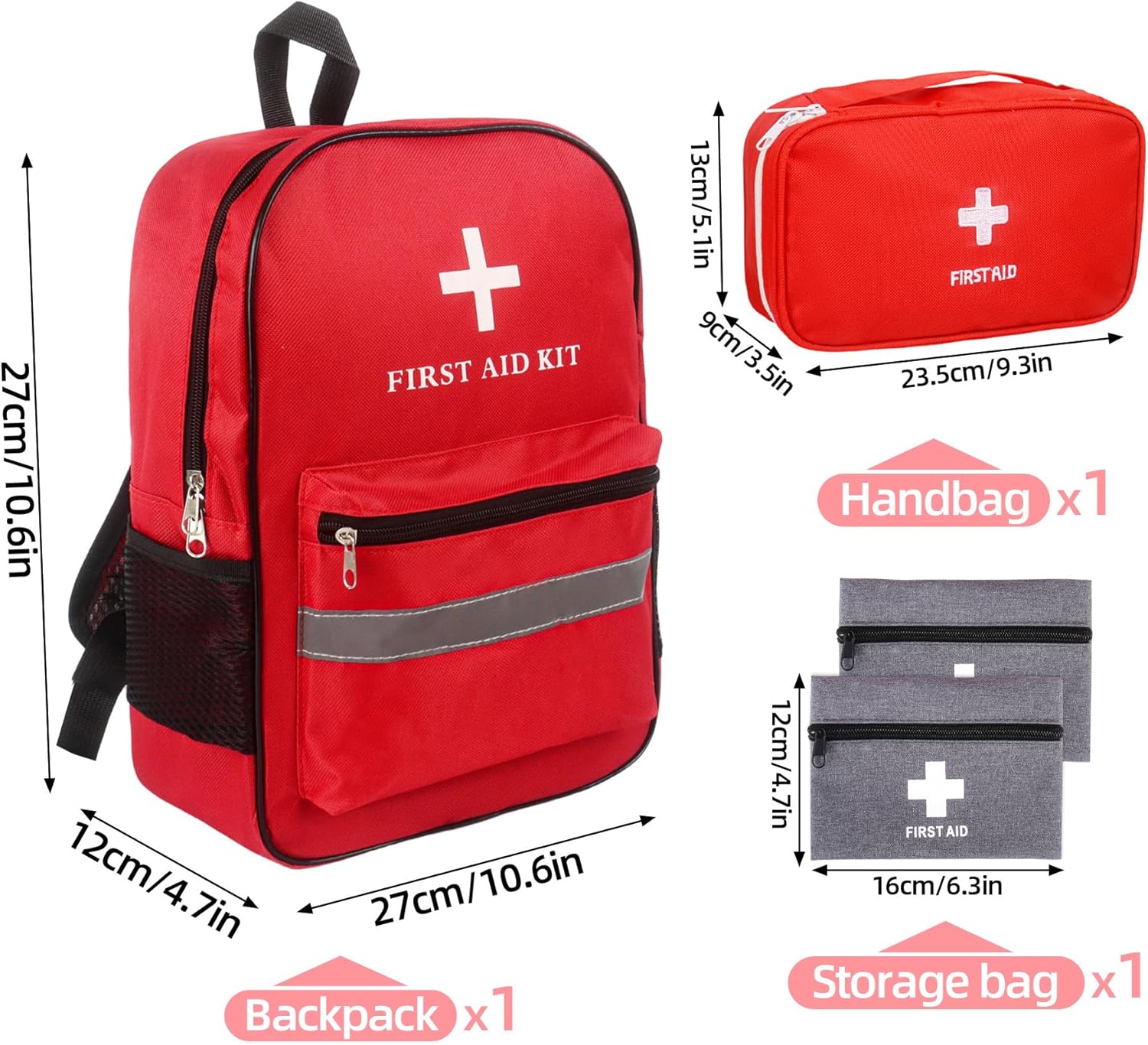 Large Capacity: This large first aid kit backpack features a roomy 37x27x12cm main compartment with multiple internal pockets and dividers. Perfectly store and separate all your emergency supplies, from bandages and medicines to scissors and pet care items, ensuring everything is visible and accessible in critical moments for both home and adventure use