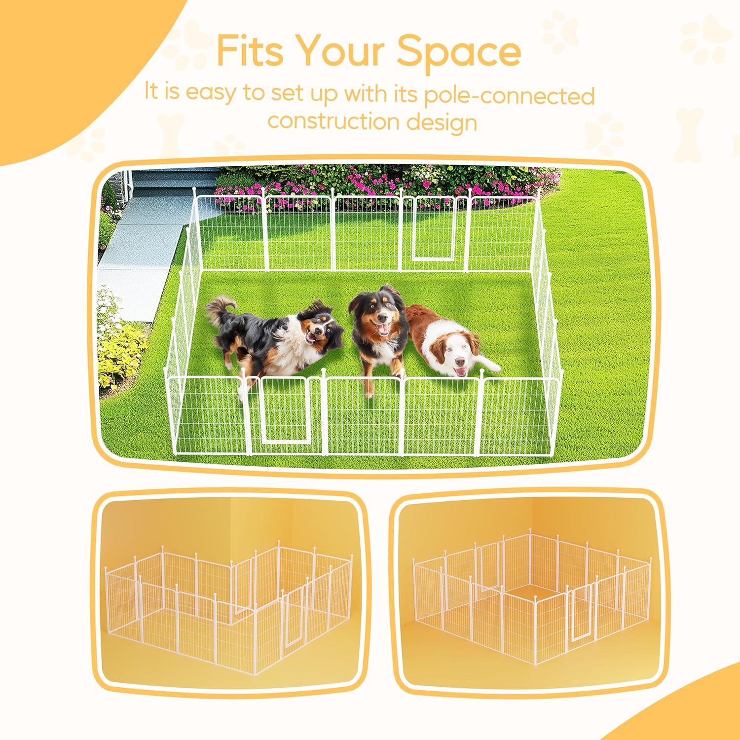 【Easy Assemble & DIY Shapes】Each panel is a separate piece. The panels could be assembled in just a few minutes without tools. You could DIY the dog pen to any shape you need, like square, rectangle, round, etc according to your house, garden or lawn