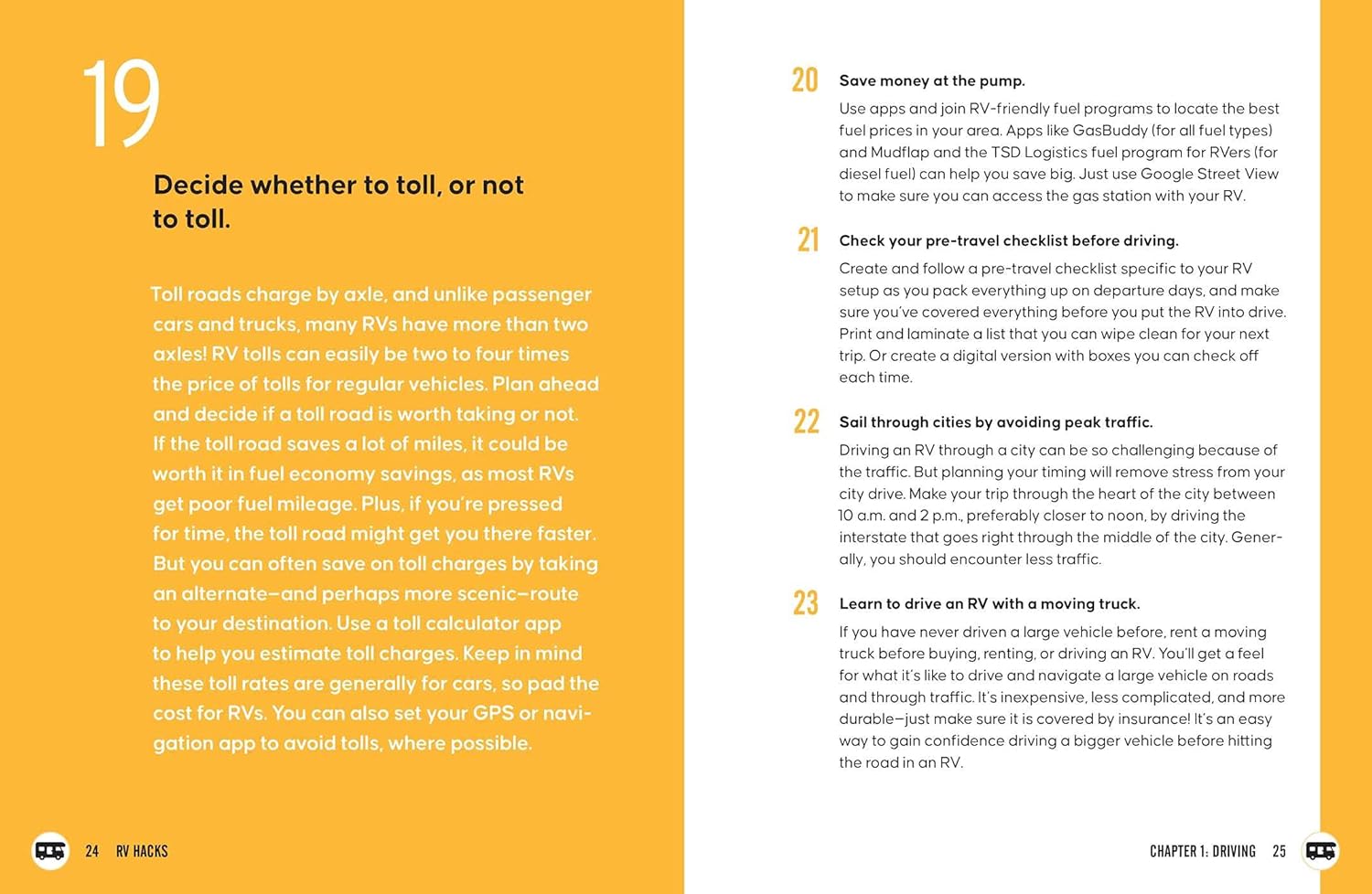 Welcome to RV life! Whether you’re a first-timer or an experienced RVer, these RV hacks are sure to make life on the road easier so you can worry less and have more fun. From ingenious organizational hacks (like broom holders to keep flashlights at the ready or suction cup shower organizers to corral kids’ activity supplies) to ideas for repurposing plastic bottles to make a funnel or pancake batter mixer, RV Hacks has everything you need to make your next cross-country caravanning adventure carefree.