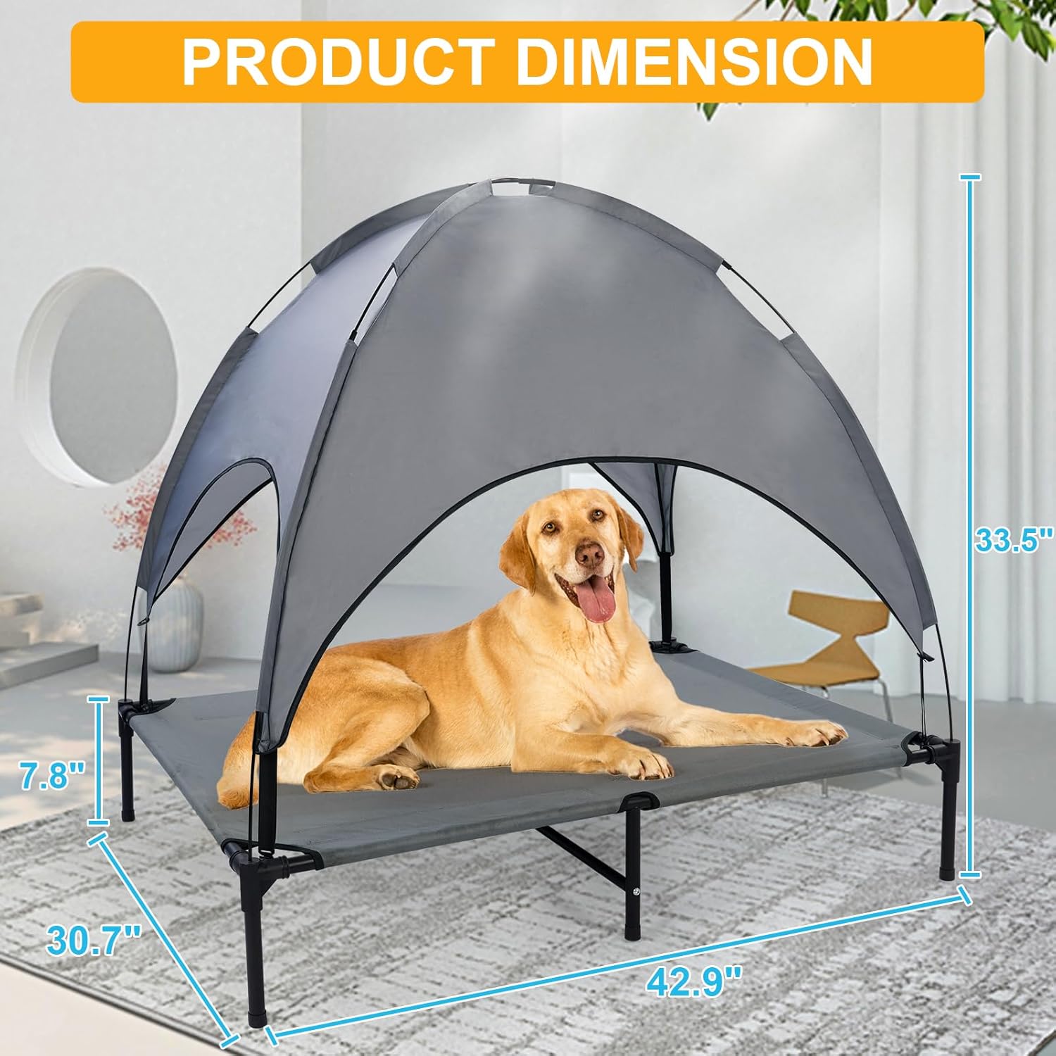 【Outdoor Dog Bed zwasdxcith Canopxcy】Equipped with a detachable sunshade, it can effectively block sunlight and provide a cool resting environment for your dog, making it more suitable for outdoor use. During installation, simply insert the support rod onto the corner tee and secure it with an elastic rope.
