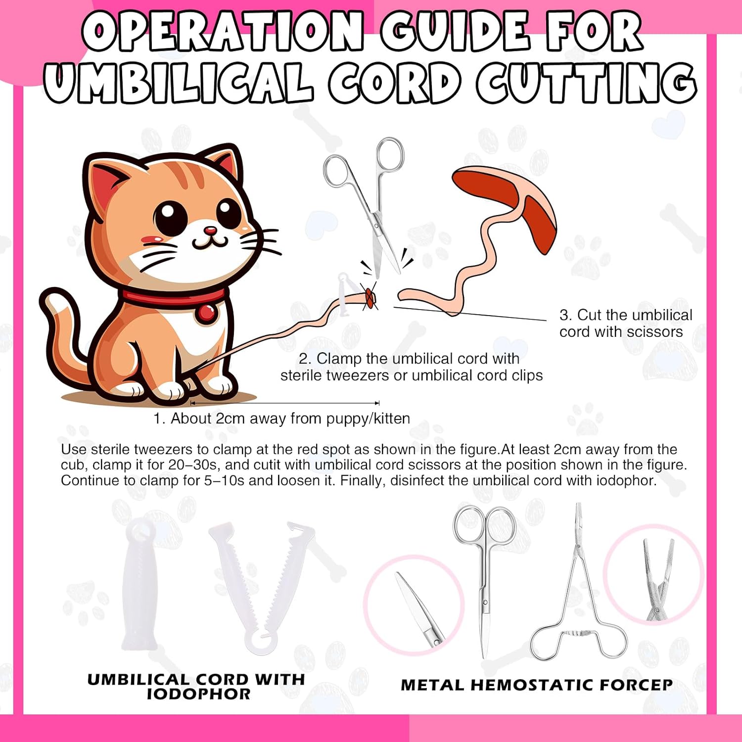 Well Equipped for the Process: this puppy and kitten whelping supplies kit is well equipped with the necessary items needed during the birthing process; Balls, forceps, scissors, cord clamps to make your pet’s birthing process smoother; The suction bulb syringe helps effortlessly clear a newborn’s mucus, suitable for manual or mechanical suction; A portable bag is included for storing all necessary supplies