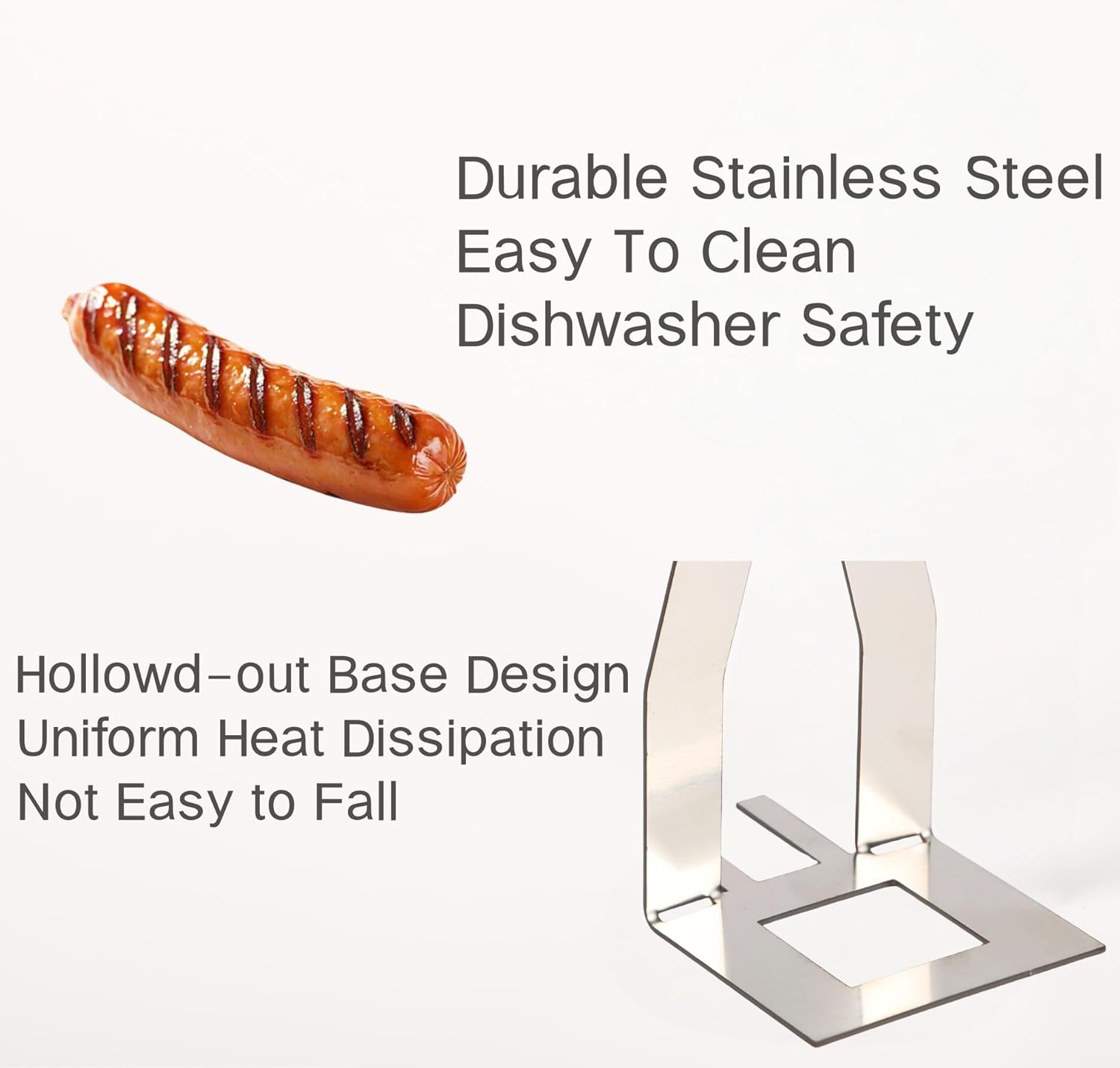 【Durable & Dishwasher-Safe】Crafted from premium stainless steel, this hotdog grill holder is built to last.It’s heat-resistant,rust-proof,and dishwasher-safe,ensuring easy cleaning and long-term use.A durable choice among stainless steel bbq sausage holder options.