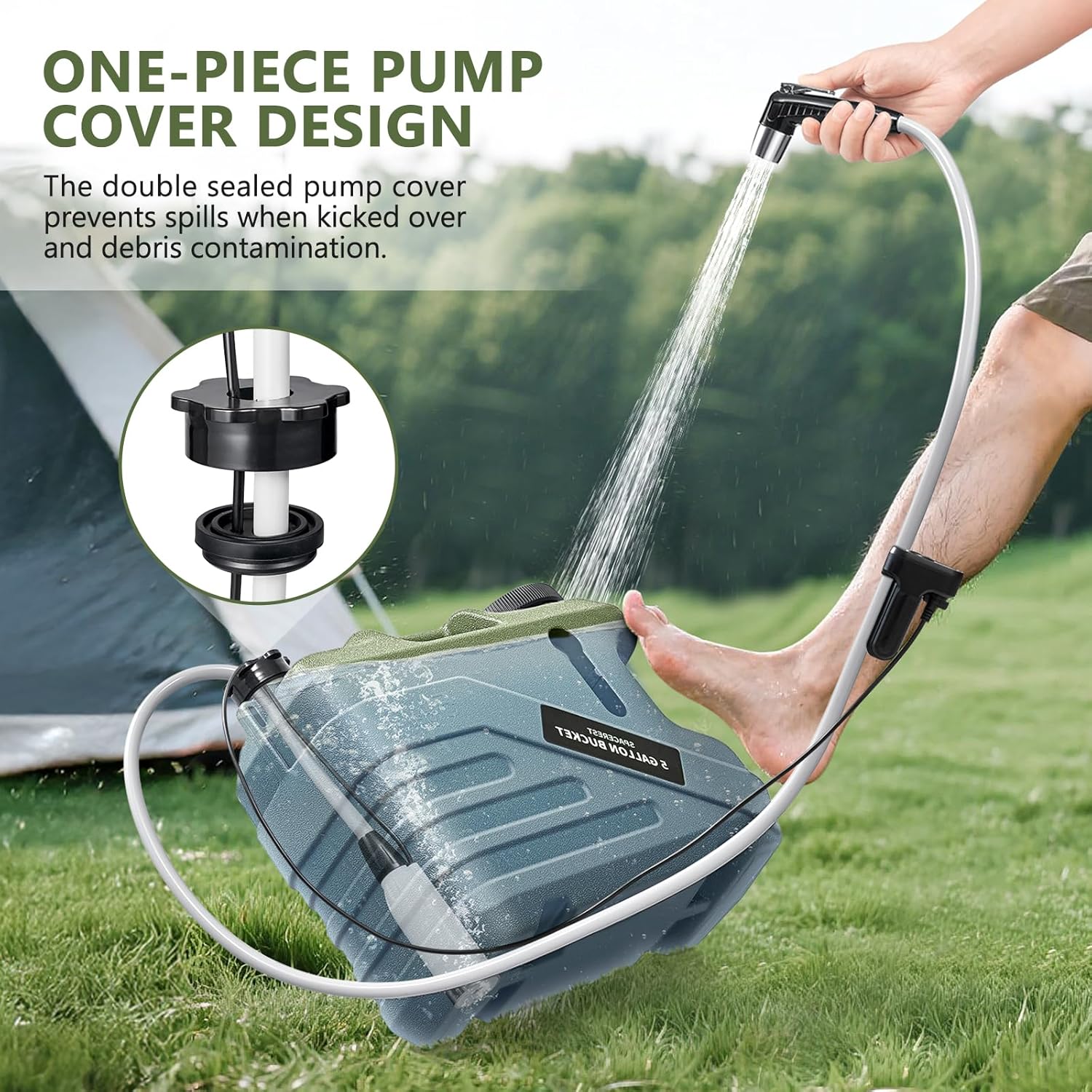 Innovative Sealing Design:Exclusive patented water jug sealing structure, the shower head fits perfectly into the mouth of the water jug after installation, and is tightly closed without leakage. Our camping shower uses a silicone waterproof ring & a rotary locking system, which provides double protection and will not leak even when it is inverted and shaken.