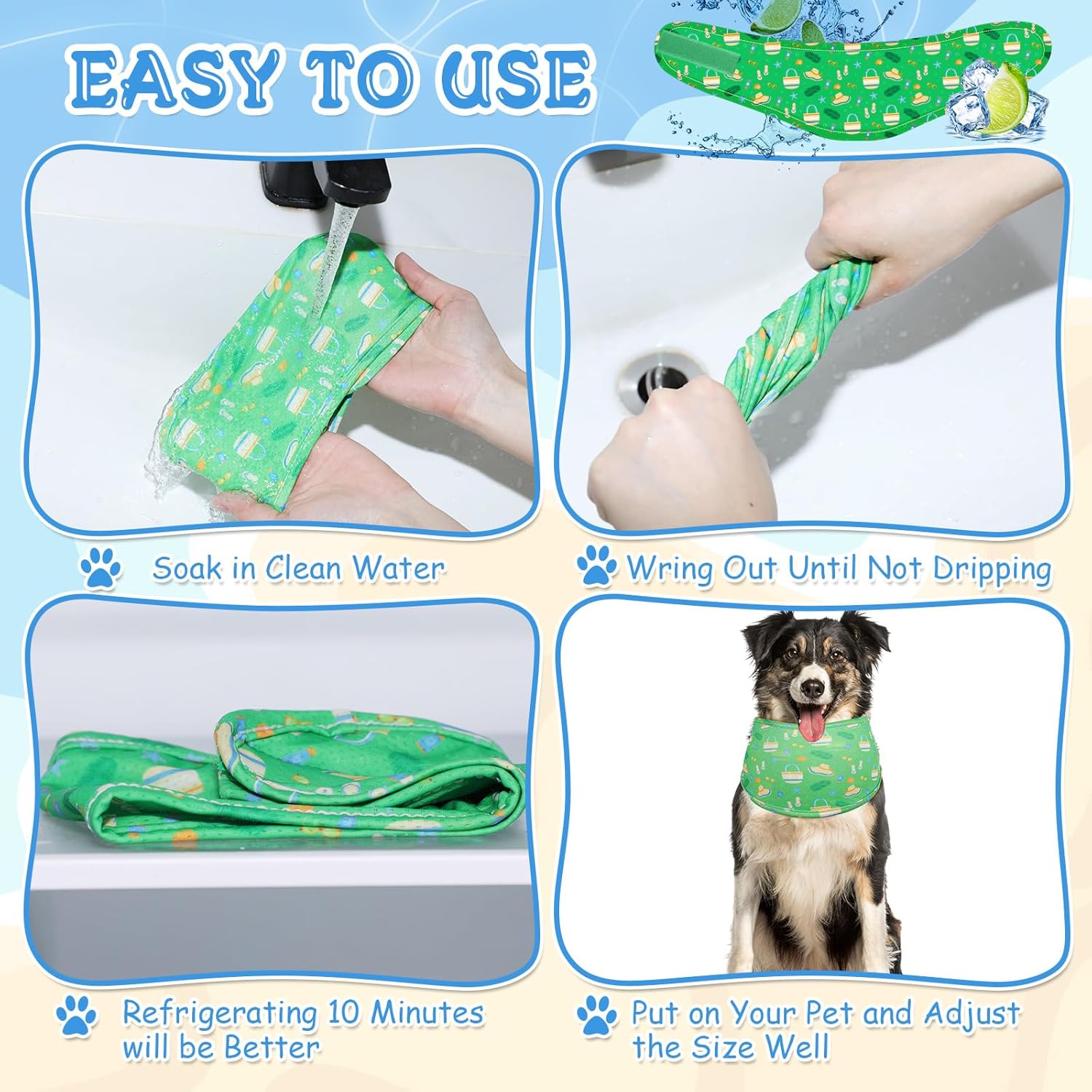 Cooling Technology: these dog scarves are made of ice silk fabric, they are lightweight, breathable, comfortable and reusable, strong water absorption, these bandanas can provide coolness and keep your pets from heat related discomfort in summer