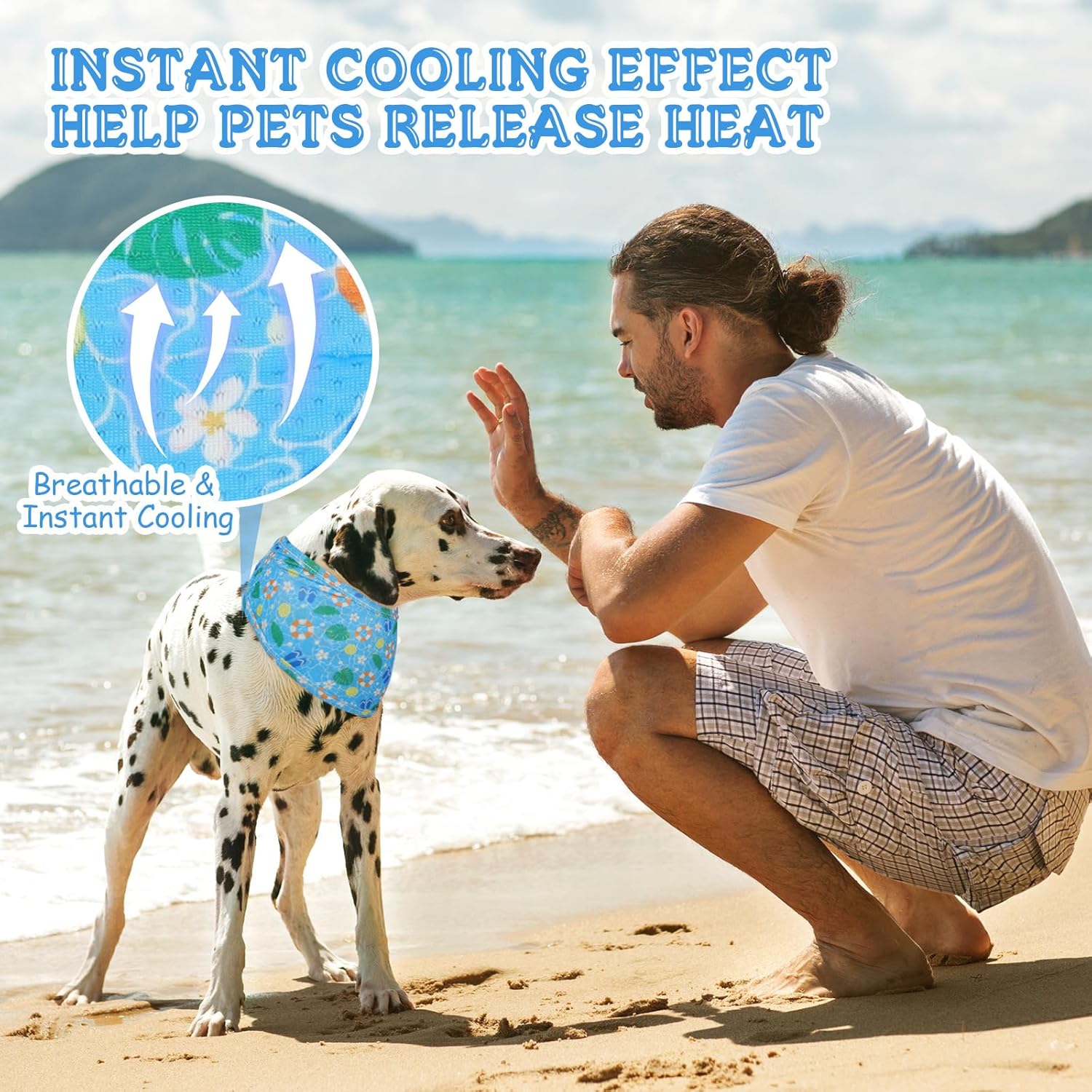 Cooling Technology: these dog scarves are made of ice silk fabric, they are lightweight, breathable, comfortable and reusable, strong water absorption, these bandanas can provide coolness and keep your pets from heat related discomfort in summer