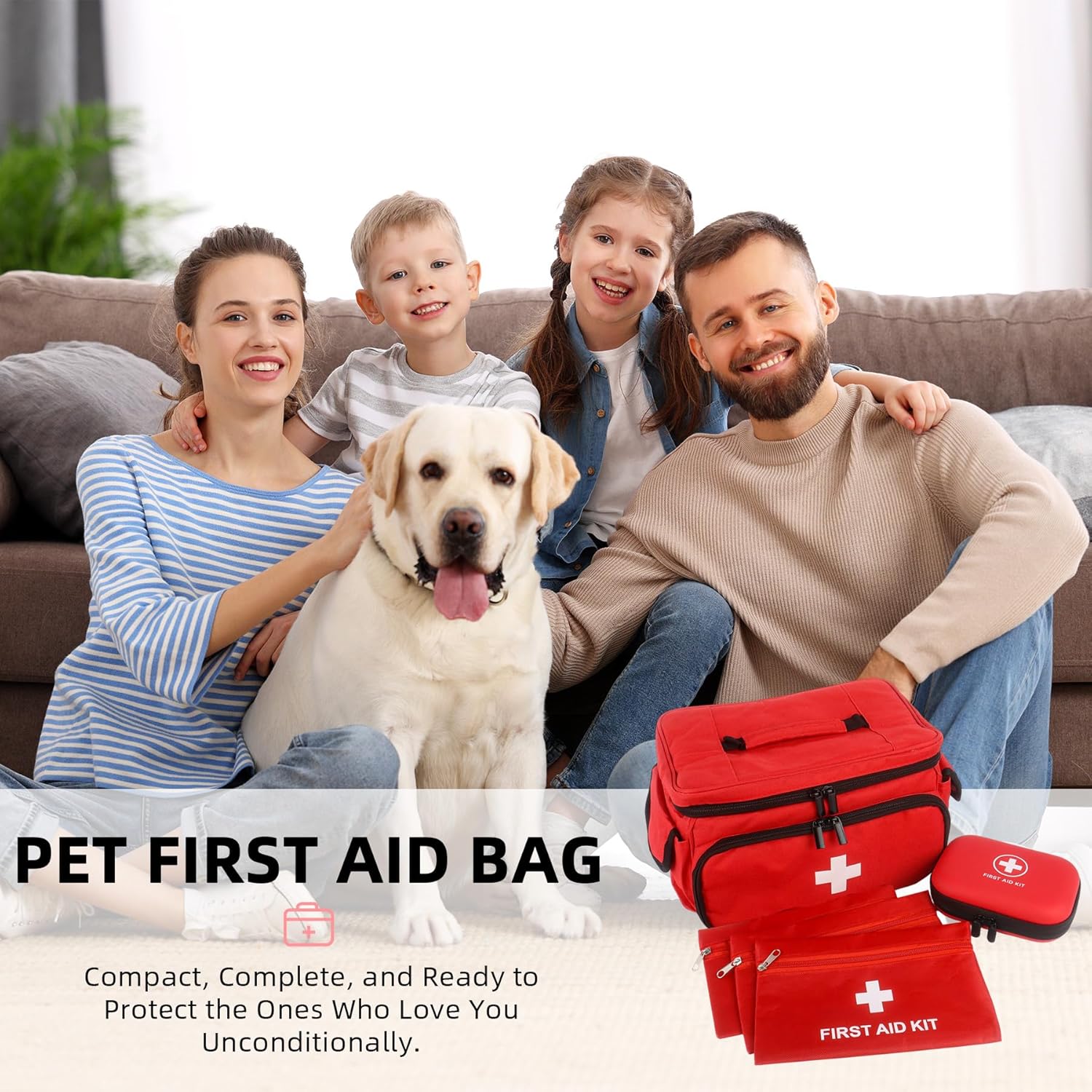 5-Piece Set: Our complete set includes 1 large medical bag 11.42″x 7.7″x 6.9″, 3 portable pouches 9.84″x5.91″, and 1 Hanging bag 7″x 4.9″ x 2.2″ . This versatile system allows you to customize your kit for any situation, making it a essential dog first aid kit for hikes or a comprehensive pet first aid kit for dogs at home