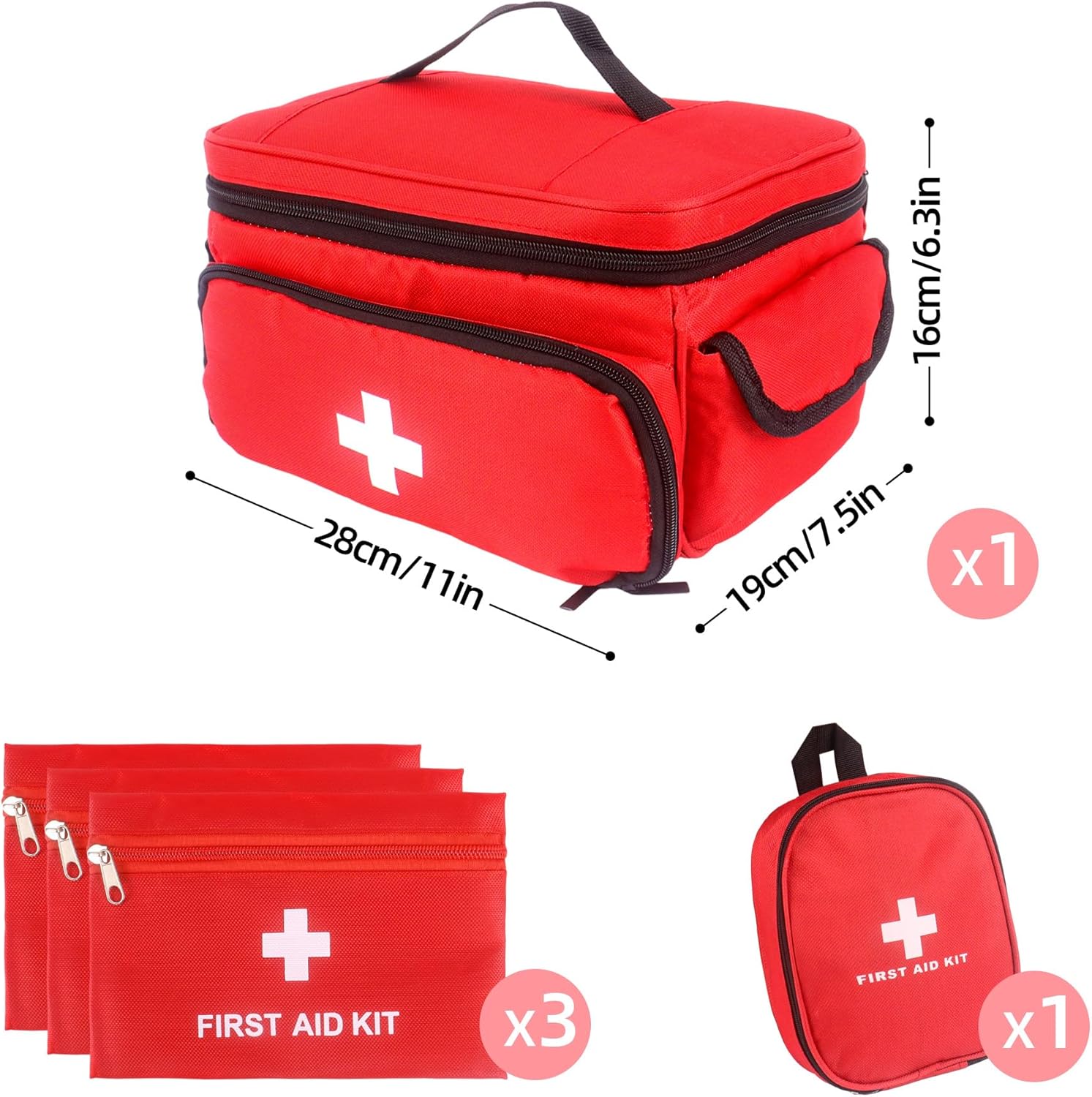 Large Capacity: This large first aid bag features a roomy 28x19x16cm main compartment with multiple internal pockets and dividers. Perfectly store and separate all your emergency supplies, from bandages and medicines to scissors and pet care items, ensuring everything is visible and accessible in critical moments for both home and adventure use