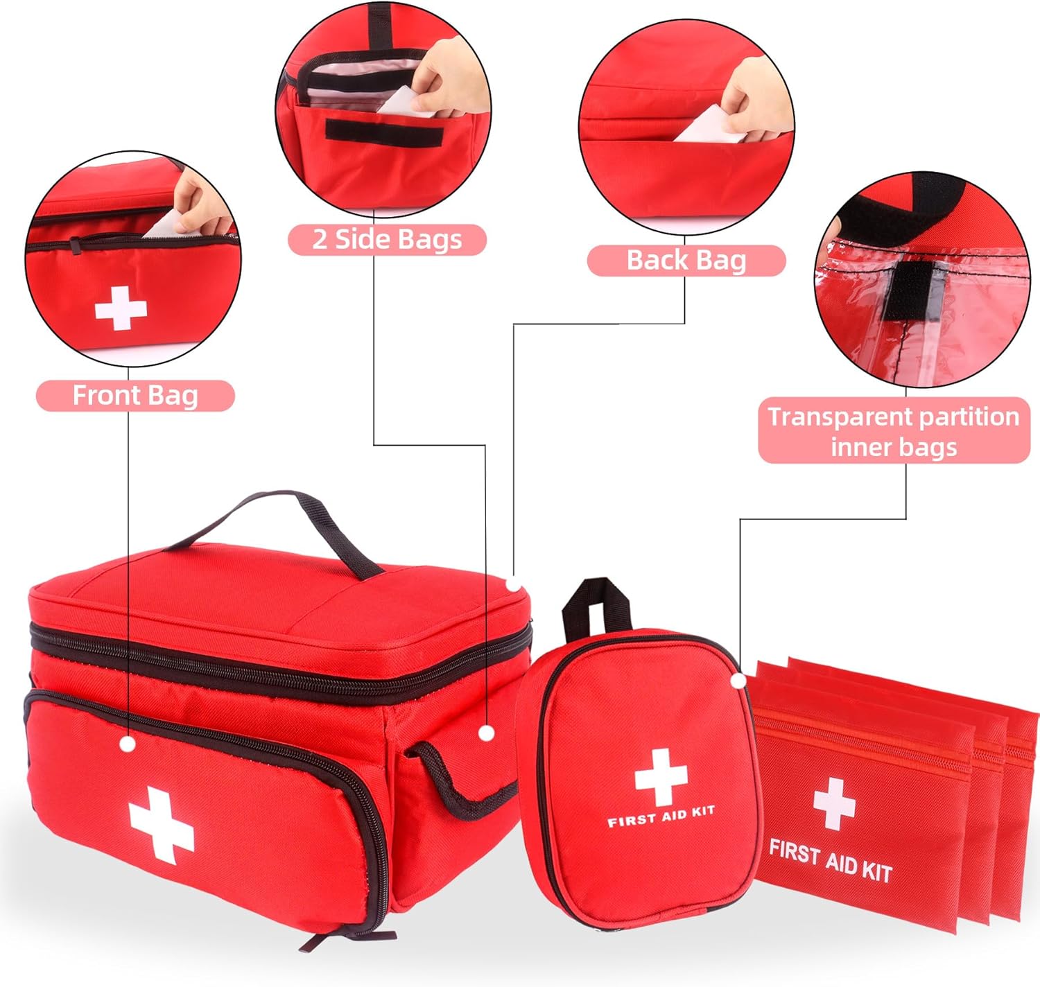 Highly Visible Red Color Design: The vibrant red color of this first aid bag ensures high visibility, allowing you to locate it instantly during an emergency. This crucial feature saves precious time for you, your family, or your pet, whether you need it for your car, office, or on a hiking trail