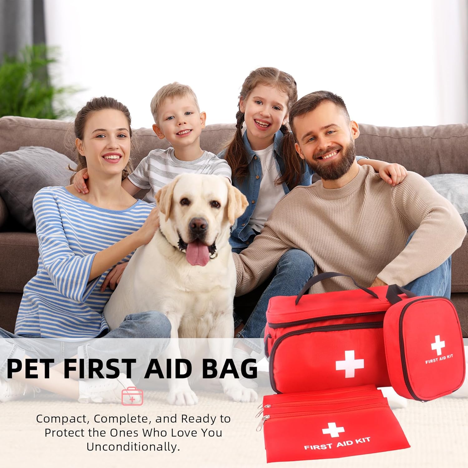 5-Piece Set: Our complete set includes 1 large medical bag 11″ x 7.5″ x 6.3″, 3 portable pouches 7.9″ x 5.5″, and 1 handy carry bag 5.1″ x 2.2″ x 6.7″ . This versatile system allows you to customize your kit for any situation, making it a essential dog first aid kit for hikes or a comprehensive pet first aid kit for dogs at home