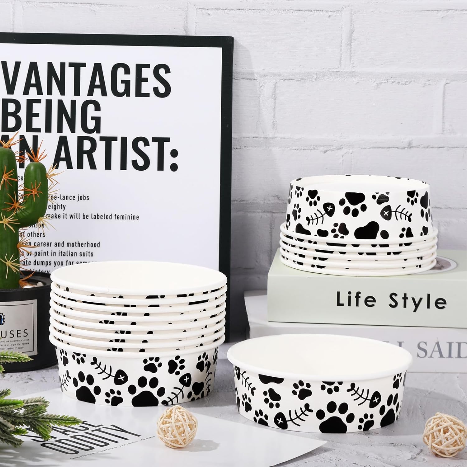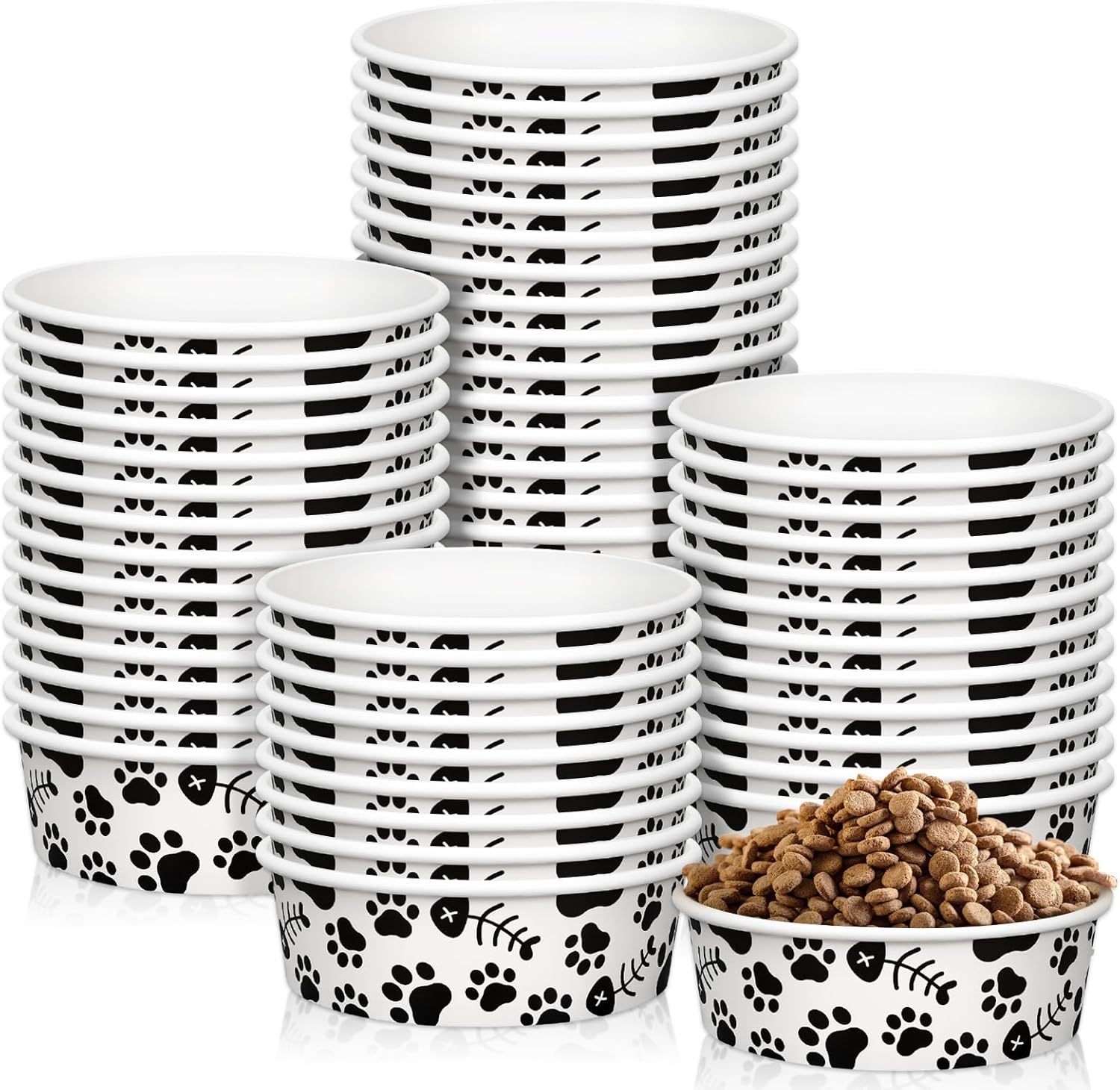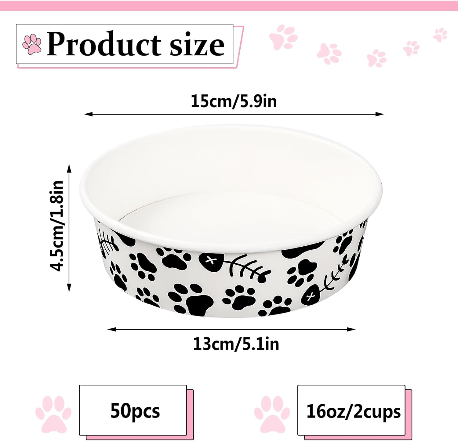 50Pcs Disposable Pet Bowls – 16oz Black & White Cat/Dog Food Dishes