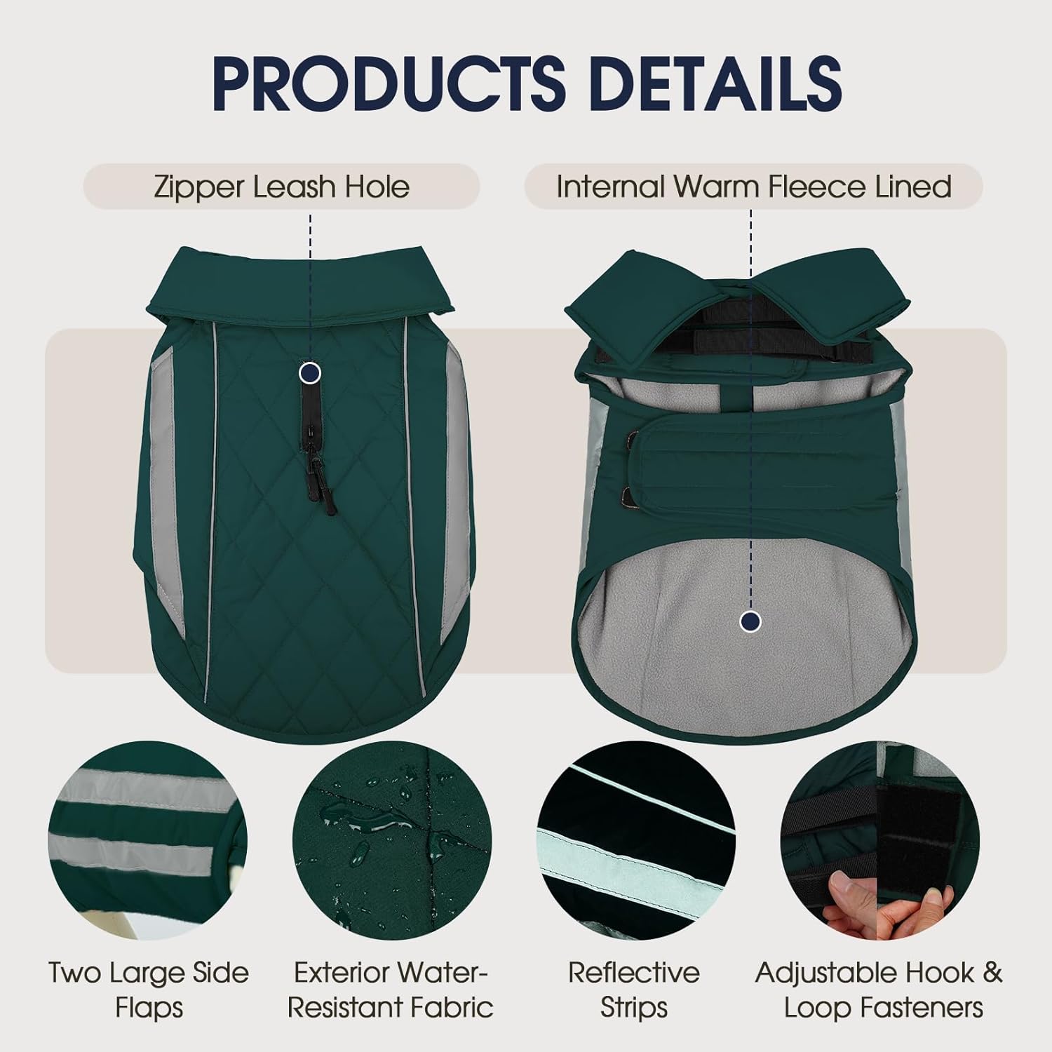 Warm & Water-Resistant: Crafted from soft polyester with a water-resistant exterior and fleece lining, this snow coat for dog shields your dog from fog, light rain, snow, and chilly winds—keeping them dry and cozy.(Note: Not designed for heavy rain.)