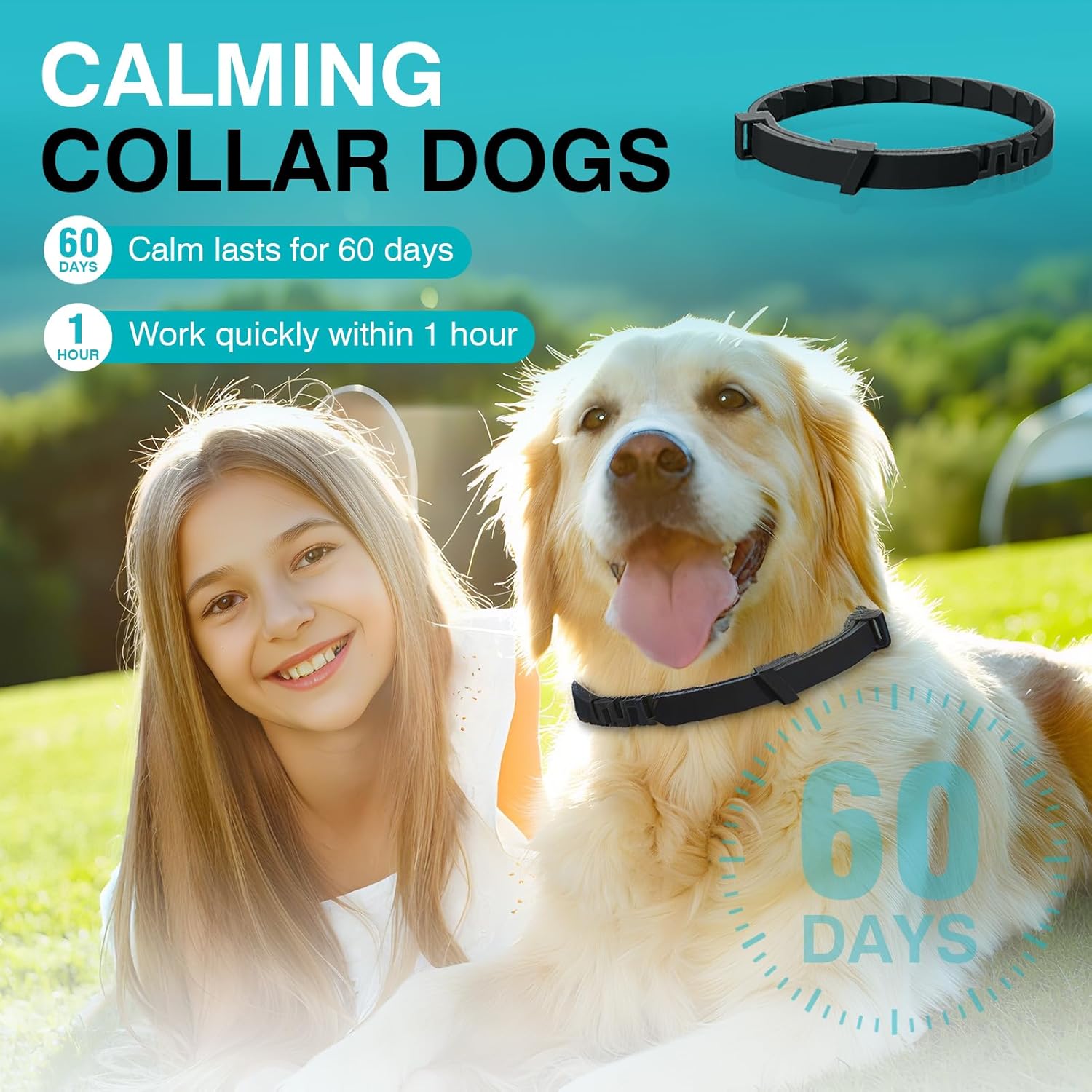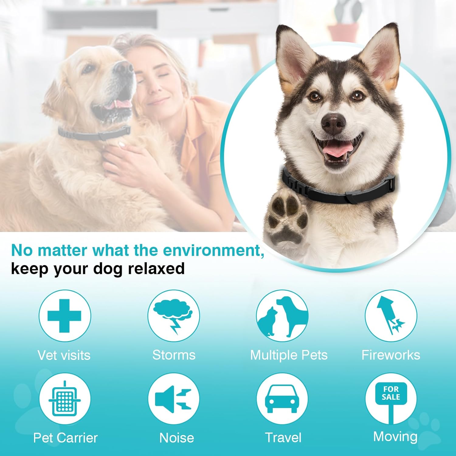 6-Pack Calming Collar Anywhere Anti Anxiety for Dogs: Calming collars are designed for dogs anxiety.Black 6-pack calming collar for dogs anxiety comes in individually sealed pouches, and pheromone collar for dogs anxiety are perfect for travel or storage. Offering instant calm, dog calming collar reduces stress and mimics the nurturing dog calming pheromone a mother naturally releases. Effective for relieving nervousness and hyperactivity, dog pheromone collar is ideal for home or on-the-go use.