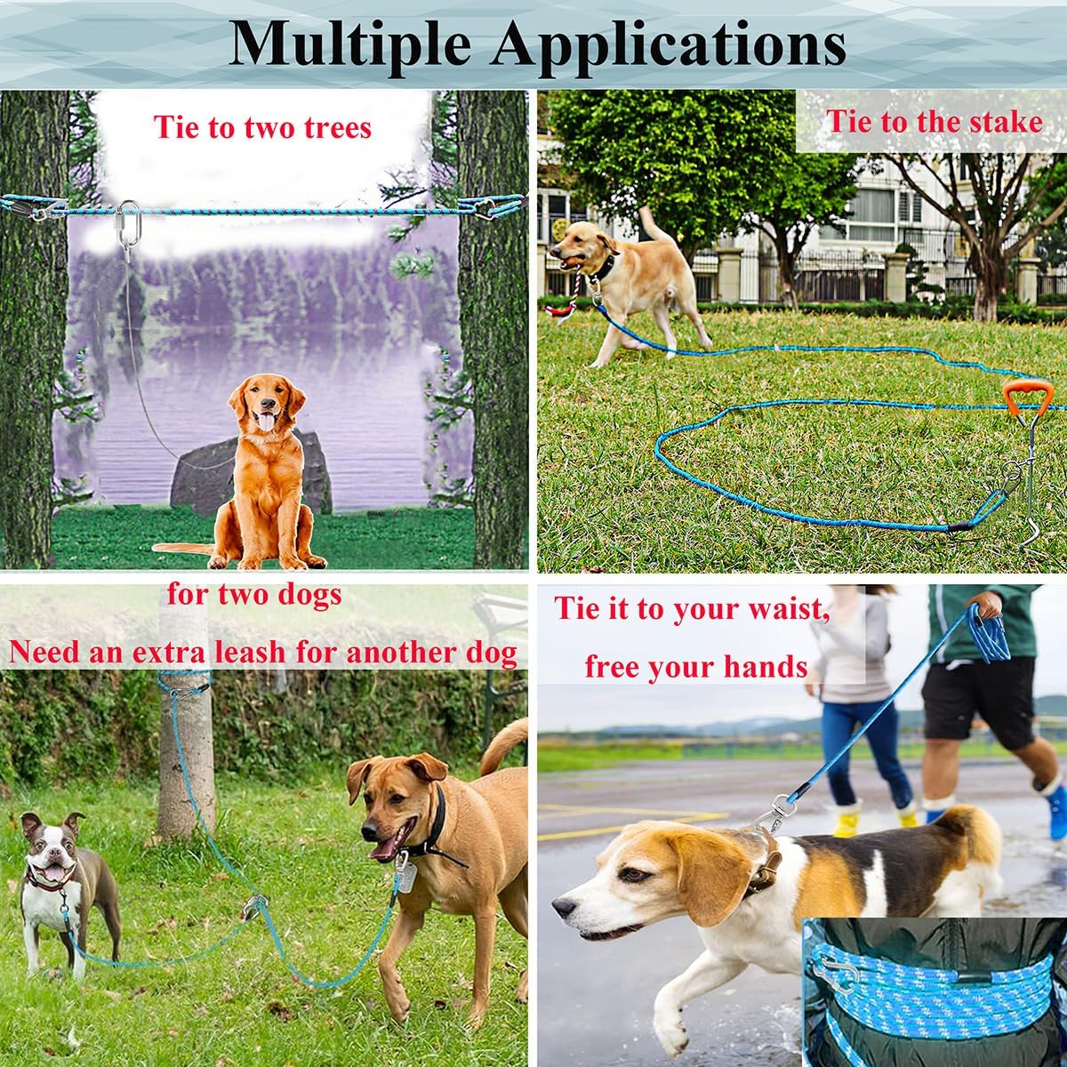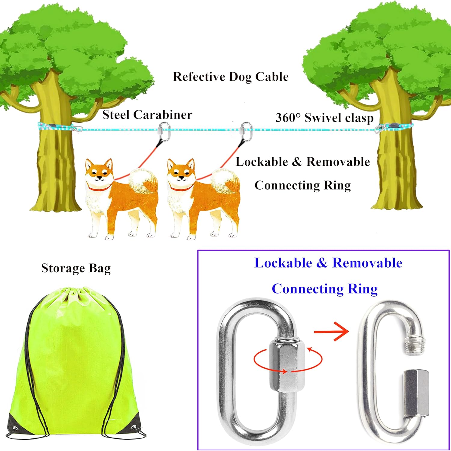 🌲 Dog Tie Out Cable for Camping, 60ft Overhead Trolley System for Two Dogs up to 300 lbs, Dog Lead Line with 360° Movable Clasp for Yard,Park and Outside (Blue, 60ft for Two Dogs) — Outdoor Dog Gear Review & Current Price